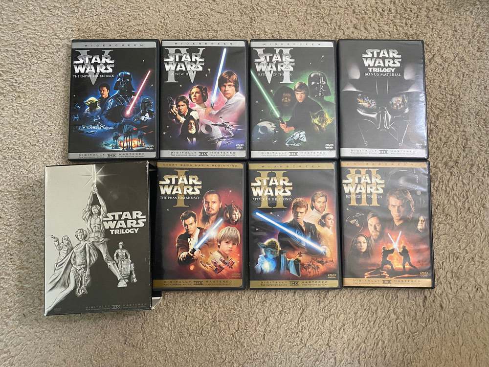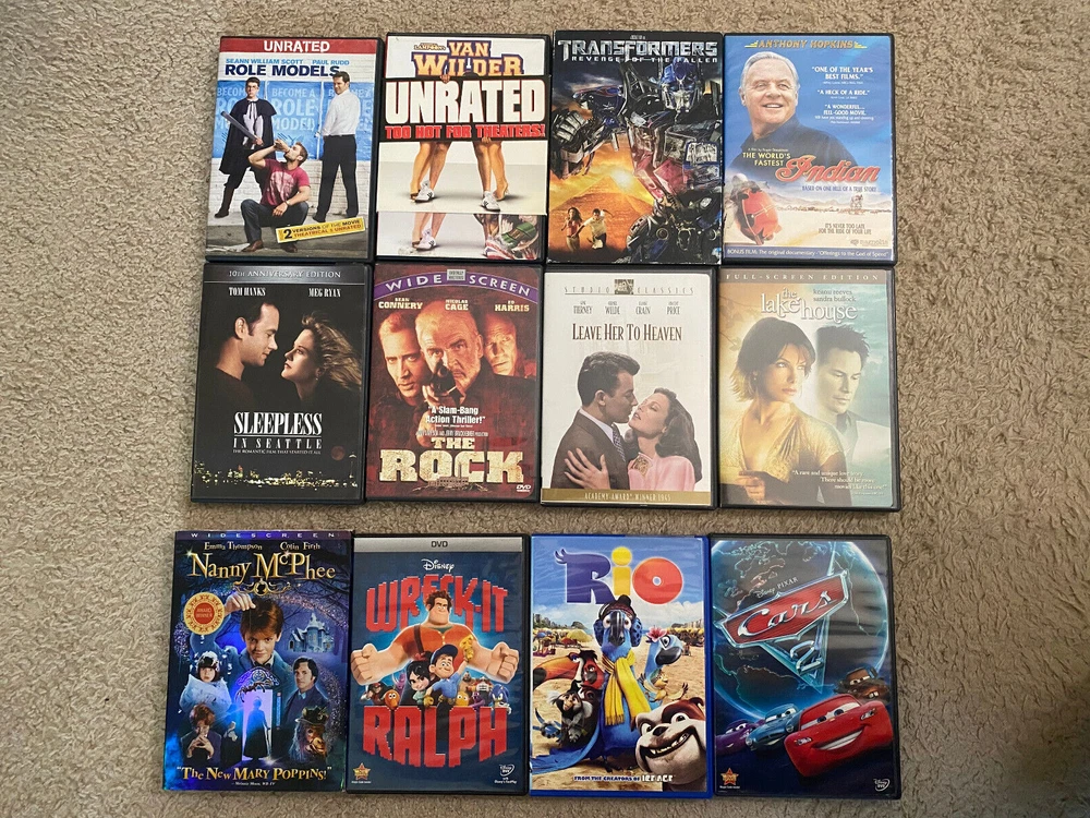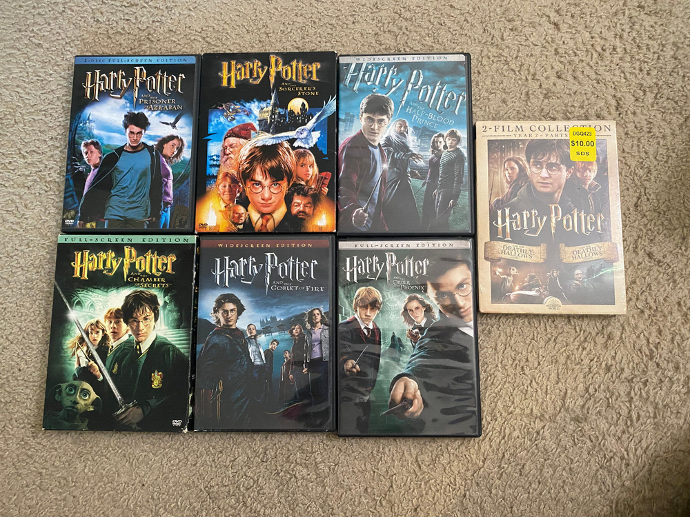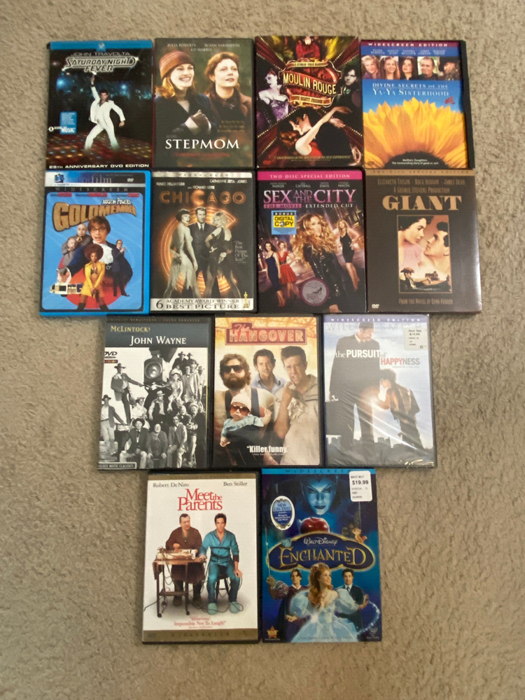 PLEASE NOTE: DVDs have been visually inspected for cracks or major damage, and all cases are intact. These DVDs have not been tested in a player, so playback quality is unconfirmed Description : This extensive DVD lot includes a wide variety of popular movies, ranging from blockbuster series like Harry Potter and Star Wars to action, comedy, and family favorites. This collection is perfect for movie enthusiasts looking to expand their library with both new and classic titles. Here’s a breakdown of the details: Condition : DVDs have been visually inspected for cracks or major damage, and all cases are intact. These DVDs have not been tested in a player, so playback quality is unconfirmed. New/Sealed : Three DVDs are brand new and sealed, as pictured (includes The Pursuit of Happyness , Enchanted , and the Harry Potter two-film collection). Highlights : Harry Potter Series : Multiple films from the series. Star Wars Collection : Includes DVDs from both the original trilogy and the prequels. Variety of Genres : Action, comedy, romance, family films, and classics. Classic Titles : Includes cult classics and family hits like Cars , Rio , Moulin Rouge , and more. Lot Contents : Harry Potter Series (various titles) Star Wars (original and prequel trilogies, with bonus materials) The Pursuit of Happyness (sealed) Enchanted (sealed) Harry Potter and the Deathly Hallows Part 1 & 2 (sealed two-film collection) Assorted action, comedy, and family DVDs such as Rambo , The Dark Knight , The Rock , and more! This is a fantastic mix of DVDs, including beloved series and classics that offer hours of entertainment. Whether you’re a collector or just looking to enjoy some great movies, this lot has something for everyone. Please Note : These DVDs are sold as-is, without testing for playback, but are visually inspected and appear in good condition.