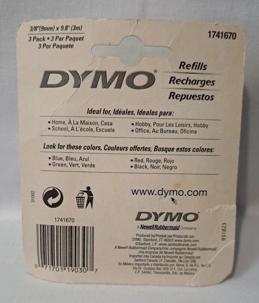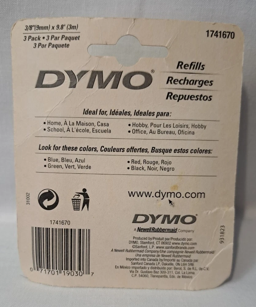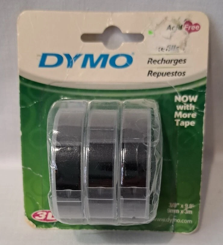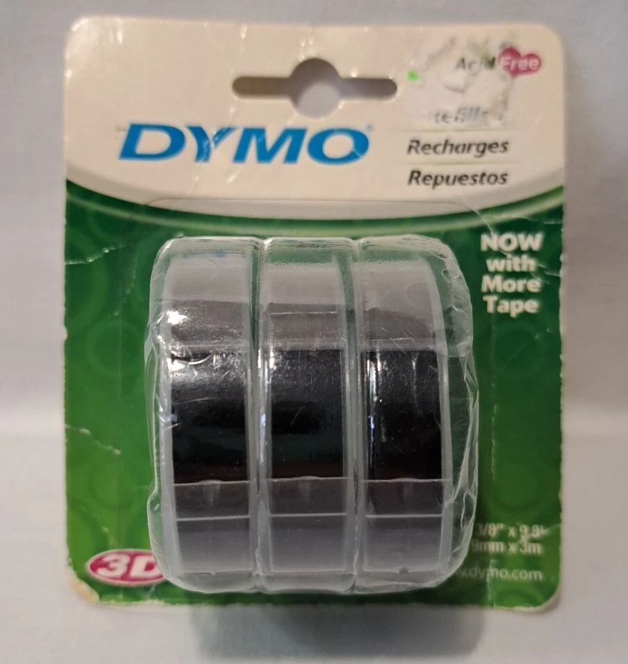 Label Maker Refill Embosser Tape 3D DYMO 1741670 Embossing Labels Black 3 Roll pack New in original packaging- packaging has wear Please view all photos zooming in on them as they are part of the description for you to judge condition