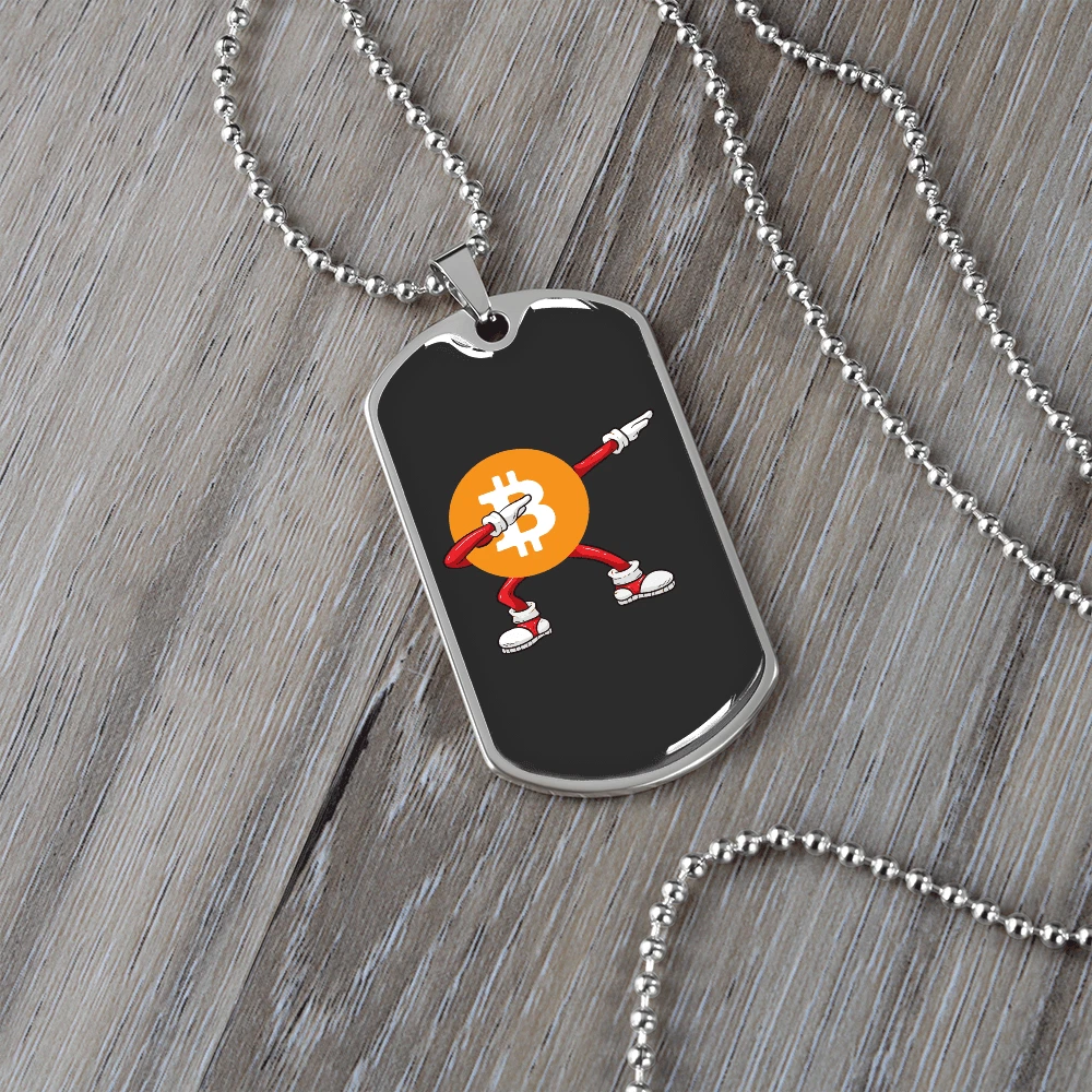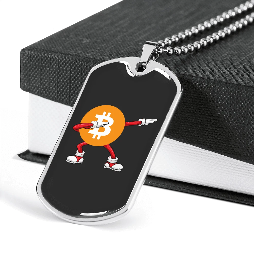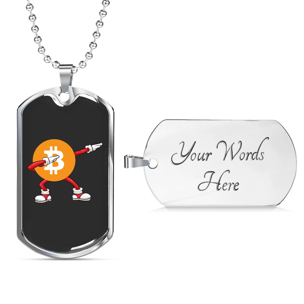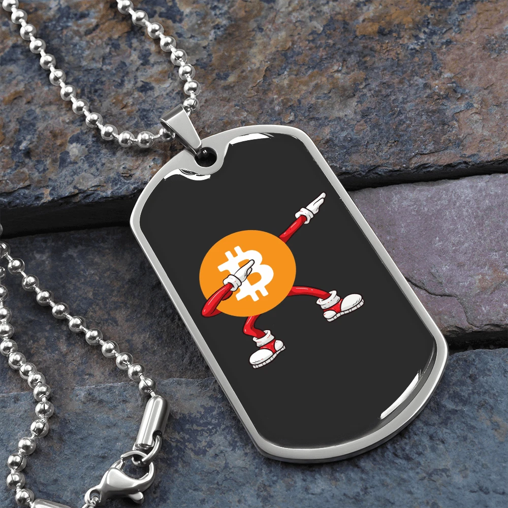 Brand: Express Your Love Gifts Closure: Lobster Clasp Type: Pendant Main Stone: None Color: Multi Color Theme: Bitcoin, Crypto, Blockchain Country/Region of Manufacture: United States Personalize: Yes Pendant Shape: Dog Tag MPN: 6942997250136 Customized: Yes Metal: Surgical Steel Chain Type: Ball Necklace Length: 24" Pendant/Locket Type: Dog Tag Material: Glass Features: Adjustable Base Metal: Stainless Steel
