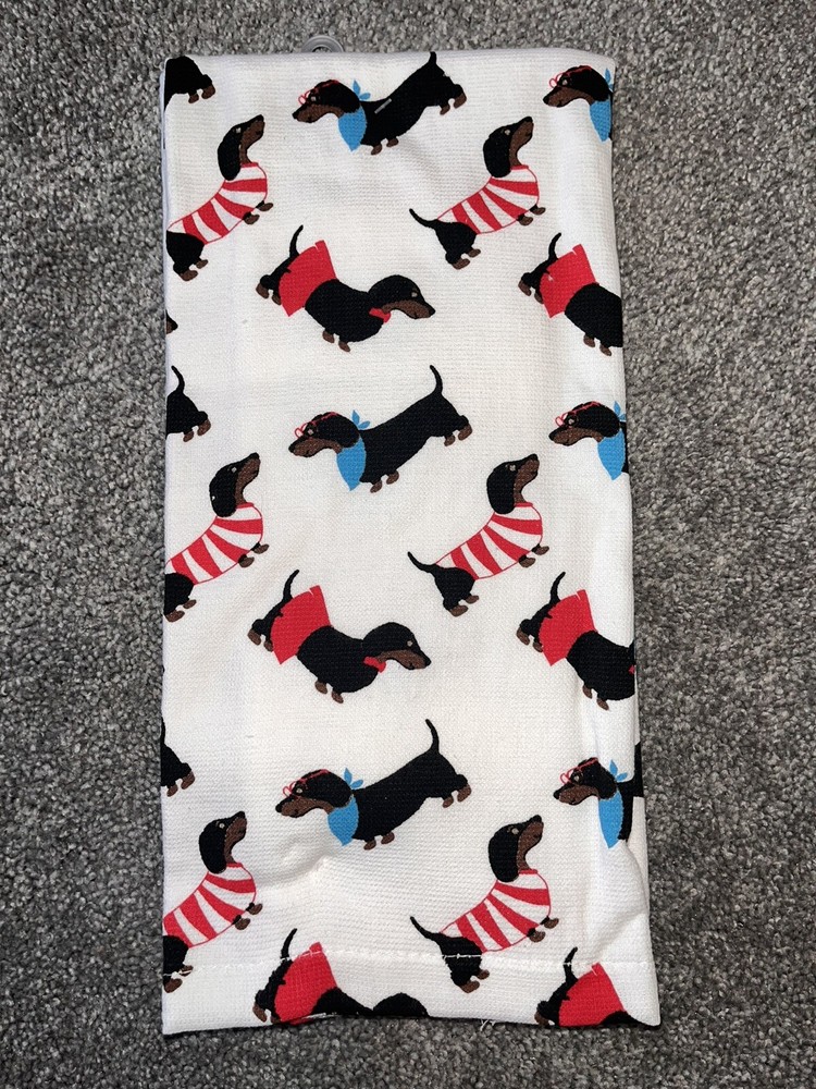 Home Wear Dachshund “You’re Pawsome” 2 Pack Hand Kitchen Bathroom Towels NEW