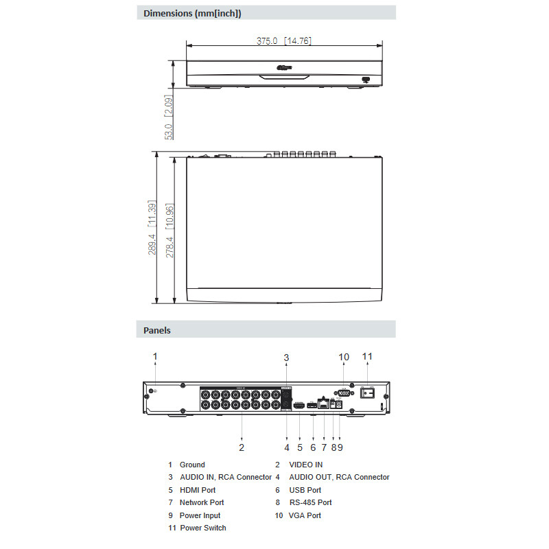 Dahua 16CH 5MP IoT POS Value/1080P 1U 2HDDs HDCVI/AHD/TVI/CVBS/IP XVR5216AN-I3 Note: Original Dahua worldwide English version and upgradeable. Features : 16CH Penta-brid 5MP Value/1080P 1U 2HDDs WizSense Digital Video Recorder > H.265+/H.265 dual-stream video compression > Supports Full-channel AI Coding > Supports HDCVI/AHD/TVI/CVBS/IP video inputs > Max 24 channels IP camera inputs, each channel up to 6MP; Max 128 Mbps incoming bandwidth > Up to 4 channels video stream (analog channel) Perimeter Protection > Up to 16 channels video stream (analog channel) SMD Plus > Up to 2 channels video stream (analog channel) human face recognition > IoT & POS functionalities Specifications: System Main Processor Embedded processor Operating System Embedded Linux Operating System Web; Local GUI Perimeter Protection Perimeter Performance AI by Recorder (Number of Channels) Advanced Model: 2 channel, 10 IVS for each channel General Model: 4 channels, 10 IVS for each channel Face Detection Face Attributes Gender; age group; glasses; expressions; face mask; beard Face Detection Performance of AI by Recorder (Number of Channels) 2 channels (up to 12 face images/s) Face Recognition Face Database Capacity Up to 10 face databases with 10000 face images in total. Name, gender, birthday, address, certificate type, cerificate No., countries®ions and state can be added to each face picture Face Recognition Performance of AI by Recorder (Number of Channels) 2 channels SMD Plus SMD Plus by Recorder 16 channels: Secondary filtering for human and motor vehicle SMD Plus, reducing false alarms caused by leaves, rain and lighting condition change Audio and Video Analog Camera Input 16 BNC ports, CVI access by default, supports HDCVI/AHD/TVI/CVBS auto-detect Camera Input 1. CVI: 5MP@20fps, 5MP@25fps, 5MP@10/12.5fps, 4MP@25/30fps, 1080p@25/30fps, 720p@50/60fps, 720p@25/30fps. 2. TVI: 5MP@20fps, 4MP@25/30fps, 1080p@25/30fps, 720p@25/30fps. 3. AHD: 5MP@20fps, 4MP@25/30fps, 1080p@25/30fps, 720p@25/30fps. IP Camera Input Up to 24 channels of IPC access 8 IP channels by default + 16 channels (analog channels are converted to IP channels) incoming bandwidth: 128 Mbps, recording bandwidth: 128 Mbps and outgoing bandwidth: 128 Mbps *After IP channels are added beyond the existing channels, the AI Function (IVS, SMD, FACE) will be disabled. Encoding Capacity Main stream: 5MP Mode: 4-ch 5MP@(1-6fps); other channels 5M-N@(1-12fps) 5M-N Mode: All channel 5M-N@(1–12fps);4M-N,1080p@(1–15fps); 1080N, 720p, 960H, D1,CIF@(1–25/30fps) Sub stream: D1, CIF@(1–15fps) Dual-stream Yes Video Frame Rate PAL: 1 fps–25 fps. NTSC: 1 fps–30 fps. Video Bit Rate 32 Kbps–6144 Kbps Per Channel Audio Sampling 8 KHz, 16 bit Audio Bit Rate 64 Kbps Bit Rate Type Video stream and composite stream. Video Output 1 HDMI, 1 VGA VGA: 1920 × 1080, 1280 × 1024, 1280 × 720 HDMI: 3840 × 2160, 1920 × 1080, 1280 × 1024, 1280 × 720 It changes to 1920 × 1080, 1280 × 1024, 1280 × 720 when Face or IVS&SMD is selected in AI Mode. Multi-screen Display When IP extension mode not enabled: 1/4/8/9/16 When IP extension mode enabled: 1/4/8/9/16/25 Third-party Camera Access Onvif, Panasonic, Sony, Axis, Arecont, Pelco, Canon, Samsung Compression Standard Video Compression AI Coding/H.265+/H.265/H.264+/H.264 Audio Compression G.711A/G.711u/PCM Network Network Protocol HTTP; HTTPS; TCP/IP; IPv4; IPv6; UDP; NTP; DHCP; DNS; SMTP; UPnP; IP Filter; FTP; DDNS; Alarm Server; P2P; Auto Registration; IP Search (Supports IP camera, DVR, NVS, etc.) Mobile Phone Access iPhone, iPad, Android Interoperability ONVIF 22.12(Profile T; Profile S; Profile G); CGI; SDK Browser Chrome, IE9 or above, Firefox Network Mode Single-address mode Recording Playback Record Mode General, motion detection; intelligent; alarm; POS Recording Playback 1/4/9/16 It changes to 1/4/9 split when Face or IVS&SMD is selected in AI Mode. Backup Method USB Device/Network Playback Mode Instant playback, general playback, event playback, tag playback, smart playback (face and motion detection) Storage Disk Group Yes Alarm General Alarm Motion detection, video loss, tampering Anomaly Alarm No disk, disk error, low space, offline, ip conflict, MAC conflict Intelligent Alarm Face detection, face recognition, perimeter protection Alarm Linkage Record, snapshot (panoramic), IPC external alarm output, access controller, voice prompt, buzzer, log, preset, email Ports Audio Input 1-channel RCA (external) 16-channel BNC (coaxial audio) Audio Output 1-channel RCA Two-way Talk Yes (share the same audio input with the first channel) HDD Interface 2 SATA Ports, up to 16TB for a single HDD, the maximum HDD capacity varies with environment temperature RS-485 1 Port, for PTZ Control USB 2 (1 front USB 2.0 port, 1 rear USB 3.0 port) HDMI 1 VGA 1 Network Port 1 (10/100/1000 Mbps Ethernet port, RJ-45) General Power Supply DC12V, 4A Power Consumption Lower than 12 W Net Weight 1.56 kg (3.44 lb) Gross Weight 2.86 kg (6.31 lb) Product Dimensions 1U, 375.0 mm × 289.4 mm × 53.0 mm 14.76" × 11.39" × 2.09" (W × D × H) Packaging Dimensions 433.0 mm × 141.0 mm × 366.0 mm 17.05" × 5.55" × 14.41" (W × D × H) Operating Temperature –10 °C to +55 °C (+14 °F to +131 °F) Operating Humidity 10%–90% Installation Desktop Certifications CE: CE-LVD: EN 60950-1/IEC 60950-1 CE-EMC: EN 61000-3-2, EN 61000-3-3, EN 55032, EN 50130, EN 55024 FCC: Part 15 Subpart B