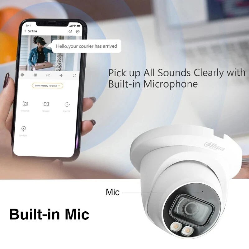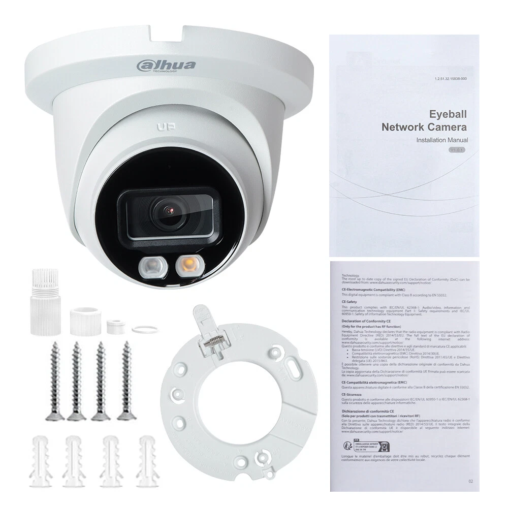 Product Description 4MP Smart Dual Light Fixed-focal Eyeball WizSense Network Camera Features: > 4-MP 1/2.9" CMOS image sensor, low luminance, and high definition image. > Outputs max. 4 MP (2688 × 1520) 20 fps, and supports 2560 × 1440 25/30 fps. > H.265 codec, high compression rate, ultra-low bit rate. > Built-in warm light/IR LED, the max. illumination distance is 30 m and the max. warm light distance is 30 m. > ROI, SMART H.264+/H.265+, flexible coding, applicable to various bandwidth and storage environments. > Rotation mode, WDR, 3D NR, HLC, BLC, digital watermarking, applicable to various monitoring scenes. > Intelligent monitoring: Intrusion, tripwire (the two functions support the classification and accurate detection of vehicle and human). > Supports max. 256 G Micro SD card; built in MIC. > 12 VDC/PoE power supply, easy for installation. > IP67 protection. > SMD Plus. Specifications: Camera Image Sensor 1/2.9" CMOS Max. Resolution 2688 (H) × 1520 (V) ROM 128 MB RAM 128 MB Scanning System Progressive Electronic Shutter Speed Auto/Manual 1/3 s–1/100,000 s Min. Illumination 0.008 lux F1.6 (Color, 30 IRE) 0.0008 lux F1.6 (B/W, 30 IRE) 0 lux (Illuminator on) S/N Ratio > 56 dB Illumination Distance 30 m (98.43 ft) (IR), 30 m (98.43 ft) (Warm light) Illuminator On/Off Control Auto; Manual Illuminator Number 1 (IR LED); 1 (Warm light) Pan/Tilt/Rotation Range Pan: 0°–360° Tilt: 0°–78° Rotation: 0°–360° Lens Lens Type Fixed-focal Lens Mount M12 Focal Length 2.8 mm; 3.6 mm Max. Aperture F1.6 Field of View 2.8 mm: H: 95°; V: 52°; D: 114° 3.6 mm: H: 78°; V: 41°; D: 94° Iris Control Fixed Close Focus Distance 2.8 mm: 0.9 m (2.95 ft) 3.6 mm: 1.6 m (5.25 ft) DORI Distance Lens Detect Observe Recognize Identify 2.8 mm 63.6 m (208.66 ft) 25.4 m (83.33 ft) 12.7 m (41.67 ft) 6.4 m (20.99 ft) 3.6 mm 85.4 m (280.18 ft) 34.2 m (112.20 ft) 17.1 m (56.10 ft) 8.5 m (27.89 ft) Intelligence IVS (Perimeter Protection) Intrusion, tripwire (the two functions support the classification and accurate detection of vehicle and human) Smart Search Work together with Smart NVR to perform refine intelligent search, event extraction and merging to event videos Video Video Compression H.264H; H.265; H.264; H.264B; MJPEG (Only supported by the sub stream) Smart Codec Smart H.265+; Smart H.264+ Video Frame Rate Main stream: 2688 × 1520 (1–20 fps)/2560 × 1440 (1–25/30 fps) Sub stream: 704 × 576 (1–25 fps)/704 × 480 (1–30 fps) *The values above are the max. frame rates of each stream; for multiple streams, the values will be subjected to the total encoding capacity. Stream Capability 2 streams Resolution 4M (2688 × 1520/2560 × 1440); 3M (2304 × 1296); 1080p (1920 × 1080); 1.3M (1280 × 960); 720p (1280 × 720); D1 (704 × 576/704 × 480); VGA (640 × 480); CIF (352 × 288/352 × 240) Bit Rate Control CBR/VBR Video Bit Rate H.264: 32 kbps–6144 kbps H.265: 12 kbps–6144 kbps Day/Night Auto(ICR)/Color/B/W BLC Yes HLC Yes WDR 120 dB White Balance Auto; natural; street lamp; outdoor; manual; regional custom Gain Control Auto;Manual Noise Reduction 3D NR Motion Detection OFF/ON (4 areas, rectangular) Region of Interest (RoI) Yes (4 areas) Image Rotation 0°/90°/180°/270° (Support 90°/270° with 2688 ×1520 resolution and lower) Mirror Yes Privacy Masking 4 areas Audio Built-in MIC Yes Audio Compression G.711a; G.711Mu; PCM; G.726 Alarm Alarm Event No SD card; SD card full; SD card error; network disconnection; IP conflict; illegal access; motion detection; video tampering; tripwire; intrusion; voltage detection; security exception; SMD Network Network Port RJ-45 (10/100 Base-T) SDK and API Yes Network Protocol IPv4; IPv6; HTTP; TCP; UDP; ARP; RTP; RTSP; RTCP; RTMP; SMTP; FTP; SFTP; DHCP; DNS; DDNS; NTP; Multicast; ICMP; IGMP Interoperability ONVIF (Profile S/Profile T); CGI; P2P; Milestone User/Host 6 (Total bandwidth: 36 M) Storage FTP; SFTP; Micro SD card (support max. 256 GB) Browser IE Chrome Firefox Management Software DSS;DMSS Mobile Client iOS;Android Cyber Security Configuration encryption; Trusted execution; Digest; Security logs; WSSE; Account lockout; syslog; Video encryption; 802.1x; IP/MAC filtering; HTTPS; Trusted upgrade; Trusted boot; Generation and importing of X.509 certification Certification Certifications CE-LVD: EN 62368-1; CE-EMC: Electromagnetic Compatibility Directive 2014/30/EU; FCC: 47 CFR FCC Part 15, Subpart B Power Power Supply 12 VDC/PoE (802.3af) Power Consumption Basic: 2.1 W (12 VDC); 2.5 W (PoE) Max. (H.265 + intelligence on + WDR + warm light): 4.4 W (12 VDC); 5.2 W (PoE) Environment Operating Temperature –40 °C to +60 °C (–40 °F to +140 °F) Operating Humidity ≤95% Storage Temperature –40 °C to +60 °C (–40 °F to +140 °F) Protection IP67 Structure Casing Material Inner core: Metal; Cover: Metal; Decoration ring: Plastic Product Dimensions 99.1 mm × Φ121.9 mm (3.90" × Φ4.80") Net Weight 0.46 kg (1.01 lb) Gross Weight 0.65 kg (1.43 lb) Shipping & Handling: Warranty & Return Policy: Feedback & About Us: About Customs duty/Tax: 1. Item will be shipped out within 5 business days after the payment. Please check and make sure your address is correct before payment. (In order to make sure you can receive the items successfully, please provide your phone number as well.) 2. The items will be shipped via Post Office Airmail. It usually takes around 2 to 3 weeks to United Stated, United Kingdom, Australia, Canada and some European countries. But for other countries, it may need 4-6 weeks to deliver the parcel. It may take longer time if there is abnormal weather condition or customs control issue. Please kindly contact us for refund or assistance if the item doesn’t receive during the time. (If you want a faster service, please contact us before your bidding or purchase.) 3. Please contact us for further assistance if you don't receive the item on time. (Before opening up any "Item not received" dispute/claim, please contact us for a 