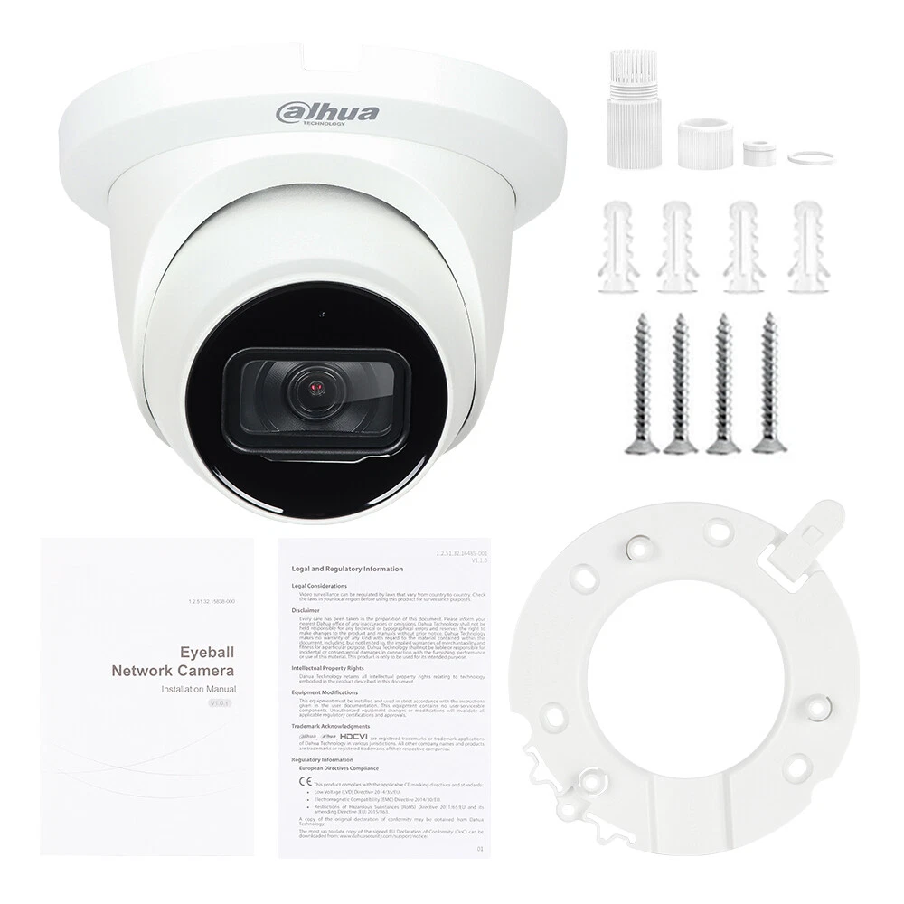 Product Description 8MP Lite IR Fixed-focal Eyeball Network Camera Features: 8MP, 1/2.7" CMOS image sensor, low illuminance, high image definition Outputs max. 8MP (3840 × 2160) @15 fps, and supports 2688×1520 (2688 × 1520) @25/30 fps H.265 codec, high compression rate, ultra-low bit rate Built-in IR LED, max IR distance: 30 m ROI, SMART H.264+/H.265+, flexible coding, applicable to various bandwidth and storage environments Rotation mode, WDR, 3D NR, HLC, BLC, digital watermarking, applicable to various monitoring scenes Intelligent detection: Intrusion, tripwire Abnormality detection: Motion detection, video tampering, no SD card, SD card full, SD card error, network disconnection, IP conflict, illegal access, voltage detection Supports max. 256 GB Micro SD card, built-in MIC 12V DC/PoE power supply IP67 protection Specifications: Camera Image Sensor 1/2.7" CMOS Max. Resolution 3840 (H) ×2160 (V) ROM 128 MB RAM 256 MB Scanning System Progressive Electronic Shutter Speed Auto/Manual 1/3 s–1/100,000 s Min. Illumination 0.009 Lux@F2.0 S/N Ratio > 56 dB Illumination Distance 30 m (98.43 ft) Illuminator On/Off Control Auto/Manual Illuminator Number 2 (IR LED) Pan/Tilt/Rotation Range Pan: 0°–360° Tilt: 0°–78° Rotation: 0°–360° Lens Lens Type Fixed-focal Mount Type M12 Focal Length 2.8 mm 3.6 mm Max. Aperture F2.0 F2.0 Field of View 2.8 mm: Pan 105° × Tilt 56° × Diagonal 125° 3.6 mm: Pan 87° × Tilt 47° × Diagonal 104° Iris Type Fixed Close Focus Distance 2.8 mm: 1.0 m (3.3 ft) 3.6 mm: 1.9 m (6.2 ft) DORI Distance Lens Detect Observe Recognize Identify 2.8 mm 74.7 m (245.1 ft) 29.9 m (98.1 ft) 14.9 m (48.9 ft) 7.5 m (24.6 ft) 3.6 mm 106.7 m (350.1 ft) 42.7 m (140.1 ft) 21.3 m (69.6 ft) 10.7 m (35.1 ft) Smart event IVS Tripwire; intrusion Video Video Compression H.265; H.264; H.264B; MJPEG (only supported by the sub stream) Smart Codec Smart H.265+/ Smart H.264+ Video Frame Rate Main stream: 3840 × 2160 (1 fps–15 fps) 2688 × 1520 (1 fps–25/30 fps) Sub stream: 704 × 576 (1 fps–25 fps) 704 × 480 (1 fps–30 fps) Stream Capability 2 streams Resolution 3840 × 2160 (3840 × 2160); 3072 × 2048 (3072 × 2048); 3072 ×1728 (3072 × 1728); 2592 × 1944 (2592 × 1944); 2688 × 1520 (2688 × 1520); 3M (2048 × 1536); 2304 × 1296 (2304 × 1296); 1080p (1920 × 1080); 1.3M (1280 × 960); 720p (1280 × 720); D1 (704 × 576/704 × 480); VGA (640 × 480); CIF (352 × 288/352 × 240) Bit Rate Control CBR/VBR Video Bit Rate H.264: 32 kbps–8192 kbps H.265: 12 kbps–8192 kbps Day/Night Auto (ICR)/Color/B/W BLC Yes HLC Yes WDR 120 dB White Balance Auto/natural/street lamp/outdoor/manual/regional custom Gain Control Auto/Manual Noise Reduction 3D NR Motion Detection OFF/ON (4 areas, rectangular) Region of Interest(RoI) Yes (4 areas) Smart Illumination Yes Image Rotation 0°/90°/180°/270° (Supports 90°/270° with 2688 × 1520 resolution and lower.) Mirror Yes Privacy Masking 4 areas Audio Built-in MIC Yes Audio Compression G.711A; G.711Mu; G.726 Alarm Alarm Event No SD card; SD card full; SD card error; network disconnection; IP conflict; motion detection; video tampering; tripwire; intrusion; illegal access; voltage detection; audio detection; safety exception Network Network RJ-45 (10/100 Base-T) SDK and API Yes Cyber Security Video encryption; firmware encryption; configuration encryption; Digest; WSSE; account lockout; security logs; IP/MAC filtering; generation and importing of X.509 certification; syslog; HTTPS; 802.1x; trusted boot; trusted execution; trusted upgrade Protocol IPv4; IPv6; HTTP; TCP; UDP; ARP; RTP ; RTSP; RTCP; RTMP; SMTP; FTP; SFTP; DHCP; DNS; DDNS; QoS; UPnP; NTP; Multicast; ICMP; IGMP; NFS; PPPoE; Bonjour Interoperability ONVIF (Profile S/Profile G/Profile T); CGI; P2P; Milestone; Genetec User/Host 20 Storage FTP; Micro SD card (support max. 256 G); NAS; SFTP Browser IE Chrome Firefox Management Software Smart PSS; DSS; DMSS Mobile Phone IOS; Android Certification Certifications CE-LVD: EN62368-1 CE-EMC: Electromagnetic Compatibility Directive 2014/30/EU FCC: 47 CFR FCC Part 15, Subpart B UL/CUL: UL60950-1 CAN/CSA C22.2 No.60950-1-07 Power Power Supply 12 V DC/PoE (802.3af) Power Consumption < 7.2 W Environment Operating Conditions –40 °C to +55 °C (–40 °F to +131 °F)/less than ≤ 95% RH Storage Temperature –40 °C to +60 °C (–40 °F to +140 °F) Protection IP67 Structure Casing Metal Dimensions 99.1 mm × Φ121.9 mm (3.9" × Φ4.8") Net Weight 0.48 kg (1.1 lb) Gross Weight 0.65 kg (1.4 lb) Shipping & Handling: Warranty & Return Policy: Feedback & About Us: About Customs duty/Tax: 1. Item will be shipped out within 5 business days after the payment. Please check and make sure your address is correct before payment. (In order to make sure you can receive the items successfully, please provide your phone number as well.) 2. The items will be shipped via Post Office Airmail. It usually takes around 2 to 3 weeks to United Stated, United Kingdom, Australia, Canada and some European countries. But for other countries, it may need 4-6 weeks to deliver the parcel. It may take longer time if there is abnormal weather condition or customs control issue. Please kindly contact us for refund or assistance if the item doesn’t receive during the time. (If you want a faster service, please contact us before your bidding or purchase.) 3. Please contact us for further assistance if you don't receive the item on time. (Before opening up any "Item not received" dispute/claim, please contact us for a full refund if you don't get the package 35 days after your cleared payment.) 1. All items will be tested or checked carefully and packaged in good condition before sending out to you. Some faulty items might happen especially after overseas transportation. We offer a replacement warranty within 30 days from the date of receipt. 2. You will be responsible for the returning shipping cost, and we will ship the replacement at our cost after receiving the re