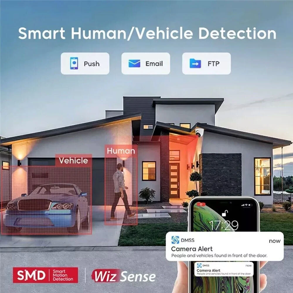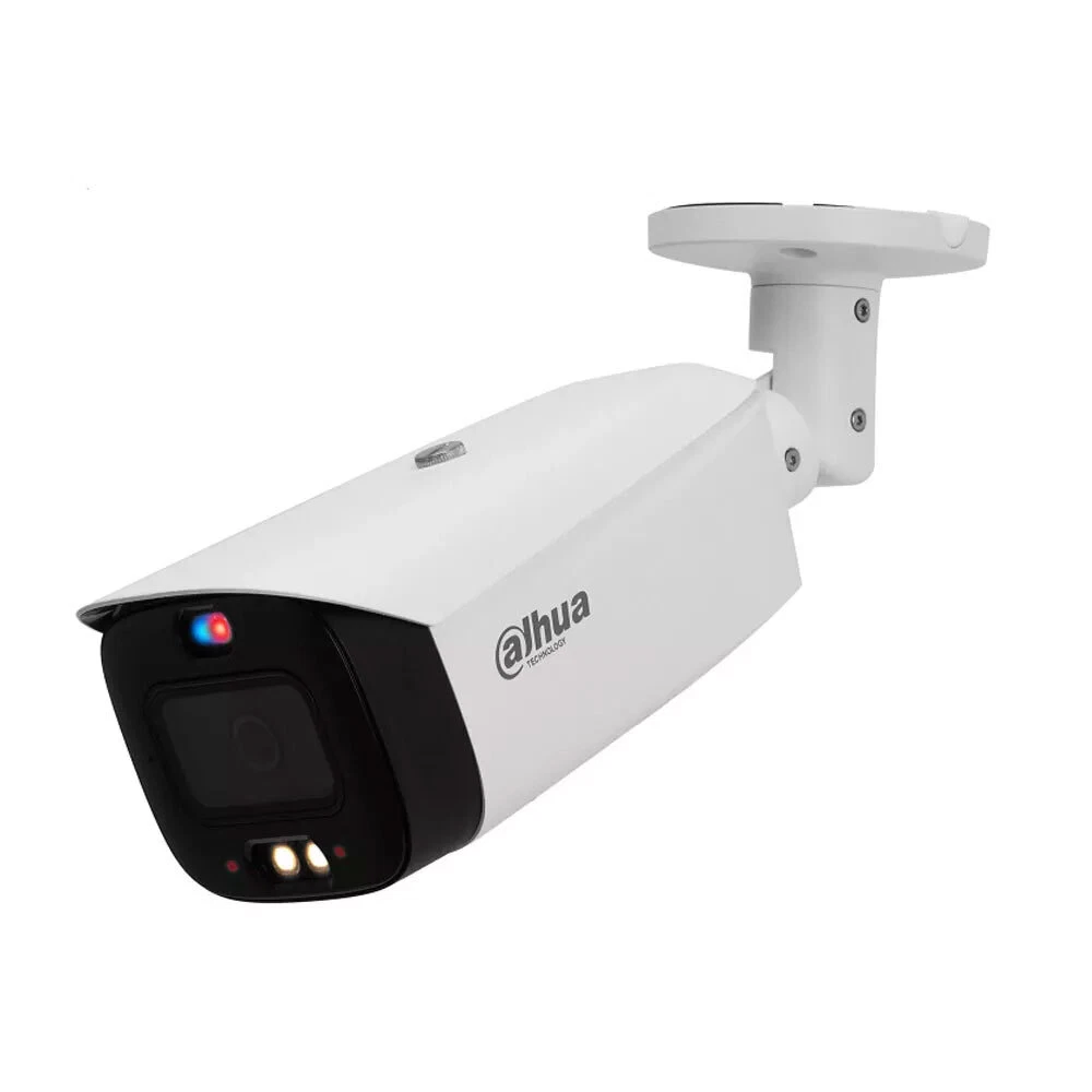 Product Description Features: > 8-MP 1/2.8" CMOS image sensor, low luminance, and high definition image. > Outputs max. 8 MP (3840 × 2160)@25/30 fps. > H.265 codec, high compression rate, ultra-low bit rate. > Built-in warm light and IR LED; the max. IR illumination distance is 30 m and warm light distance is 30 m. > ROI, SMART H.264+/H.265+, AI H.264/H.265, flexible coding, applicable to various bandwidth and storage environments. > Rotation mode, WDR, 3D NR, HLC, BLC, digital watermarking, applicable to various monitoring scenes. > Intelligent monitoring: Intrusion, tripwire (the two function support the classification and accurate detection of vehicle and human). > Abnormality detection: Motion detection, privacy masking, scene changing, audio detection, no SD card, SD card full, SD card error, network disconnection, IP conflict, illegal access, and voltage detection. > Alarm: 1 in, 1 out; audio: 1 in, 1 out; supports max. 256 G Micro SD card; built-in dual Mic; built-in speaker; support two-way talk. > 12 VDC/PoE power supply. > IP67 protection. > Sound and light alarm (red and blue lights). > SMD 4.0. > One-tap arming/disarming through alarm input Specifications: Camera Image Sensor 1/2.8" CMOS Max. Resolution 3840 (H) × 2160 (V) ROM 128 MB RAM 512 MB Scanning System Progressive Electronic Shutter Speed Auto/Manual 1/3 s–1/100,000 s Min. Illumination 0.004 lux@F1.0 (Color, 30 IRE) 0.0004 lux@F1.0 (B/W, 30 IRE) 0 lux (illuminator on) S/N Ratio ﹥ 56 dB Illumination Distance Up to 30 m (98.43 ft) (IR) Up to 30 m (98.43 ft) (warm light) Illuminator On/Off Control Auto/Manual Illuminator Number 2 (IR LED) 2 (warm light) Angle Adjustment Pan: 0°–360° Tilt: 0°–90° Rotation: 0°–360° Lens Lens Type Fixed-focal Mount Type M12 Focal Length 2.8 mm; 3.6 mm Field of View 2.8 mm: H: 106°; V: 55°; D: 125° 3.6 mm: H: 85°; V: 45°; D: 100° Iris Type Fixed Close Focus Distance 2.8 mm: 2.0 m (6.56 ft) 3.6 mm: 2.8 m (6.23 ft) DORI Distance Lens Detect Observe Recognize Identify 2.8 mm 91.0 m (298.56 ft) 36.4 m ( 119.42 ft) 18.2 m (59.71 ft) 9.1 m (29.86 ft) 3.6 mm 107.6 m (353.02 ft) 43.0 m (141.08 ft) 21.5 m (70.54 ft) 10.8 m (35.43 ft) Intelligence IVS (Perimeter Protection) Tripwire; intrusion (support the classification and accurate detection of vehicle and human) SMD 4.0 Less false alarm, longer detection distance Smart Search Work together with Smart NVR to perform refine intelligent search, event extraction and merging to event videos Quick Pick With AI NVR, quickly pick up the human/vehicle targets that users are interested in from SMD events AI SSA Adopt deep learning algorithms to adjust the parameters of the image to suit the conditions. Video Video Compression H.265; H.264; H.264H; H.264B; MJPEG (only supported by the sub stream) Smart Codec Smart H.265+; Smart H.264+ AI Coding AI H.265; AI H.264 Video Frame Rate Main stream: 3840 × 2160@(1 fps–30 fps) Sub stream: 704 × 576@(1 fps–25 fps)/704 × 480@(1 fps–30 fps) Third stream:1920 × 1080@(1 fps–30 fps) *The values above are the max. frame rates of each stream; for multiple streams, the values will be subjected to the total encoding capacity Stream Capability 3 streams Resolution 8M (3840 × 2160); 6M (3072 × 2048); 5M (3072 × 1728/2592 × 1944); 4M (2688 × 1520/2560 × 1440); 3M (2048 × 1536/2304 × 1296); 1080p (1920 × 1080); 1.3M (1280 × 960); 720p (1280 × 720); D1 (704 × 576/704 × 480); VGA (640 × 480); CIF (352 × 288/352 × 240) Bit Rate Control CBR/VBR Video Bit Rate H.264: 32kbps–8192 kbps H.265: 12kbps–8192 kbps Day/Night Auto (ICR)/Color/B/W BLC Yes HLC Yes WDR 120 dB Scene Self-adaptation Yes White Balance Auto; natural; street lamp; outdoor; manual; regional custom Gain Control Auto; manual Noise Reduction 3D NR Motion Detection OFF/ON (4 areas) Region of Interest (RoI) Yes (4 areas) Smart Illumination Yes Defog Yes Image Rotation 0°/90°/180°/270° (Support 90°/270° with 2688 × 1520 resolution and lower) Mirror Yes Privacy Masking 8 areas Audio Built-in MIC Yes, built-in dual Mic Built-in speaker Yes, built-in speaker Audio Compression PCM; G.711a; G.711Mu; G.726; G.723 Alarm Alarm Event No SD card; SD card full; SD card error; network disconnection; IP conflict; illegal access; motion detection; video tampering; tripwire; intrusion; scene changing; audio detection; voltage detection; external alarm; SMD; security exception Network Network RJ-45 (10/100 Base-T) SDK and API Yes Cyber Security Video encryption; firmware encryption; configuration encryption; Digest; WSSE; account lockout; security logs; IP/MAC filtering; generation and importing of X.509 certification; syslog; HTTPS; 802.1x; trusted boot; trusted execution; trusted upgrade Protocol IPv4; IPv6; HTTP; TCP; UDP; ARP; RTP ; RTSP; RTCP; RTMP; SMTP; FTP; SFTP; DHCP; DNS; DDNS; QoS; UPnP; NTP; Multicast; ICMP; IGMP; NFS; SAMBA; PPPoE; SNMP; P2P Interoperability ONVIF (Profile S;Profile G;Profile T); CGI User/Host 20 (Total bandwidth: 72 M) Storage FTP; SFTP; Micro SD card (support max. 256 G); NAS Browser IE: IE8/9/11 Chrome Firefox Management Software Smart PSS; DSS; DMSS Mobile Phone iOS; Android Certification Certification CE-LVD: EN 62368-1; CE-EMC: Electromagnetic Compatibility Directive 2014/30/EU; FCC: 47 CFR FCC Part 15, Subpart B; UL/CUL:UL62368-1 & CAN/CSA C22.2 No. 62368-1-14; Port Audio Input 1 channel (RCA port) Audio Output 1 channel (RCA port) Alarm Input 1 channel in: 5mA 3V–5 VDC Alarm Output 1 channel out: 300mA 12 VDC Power Power Supply 12V DC/PoE (802.3af) Power Consumption Basic: 4.5 W (12 VDC); 5.5 W (PoE) Max. (pulling stream+warning light+speaker+warm light on): 7.6 W (12 VDC); 9.1 W (PoE) Environment Operating Conditions –40 °C to +60 °C (–40 °F to +140 °F)/Less than 95% RH Storage Conditions –40 °C to +60 °C (–40 °F to +140 °F) Protection Grade IP67 Structure Casing Metal + plastic Dimensions 288.4 mm × 94.4 mm × 84.7 mm (11.35" × 3.72" × 3.33") (L × W × H) Net Weight 1.