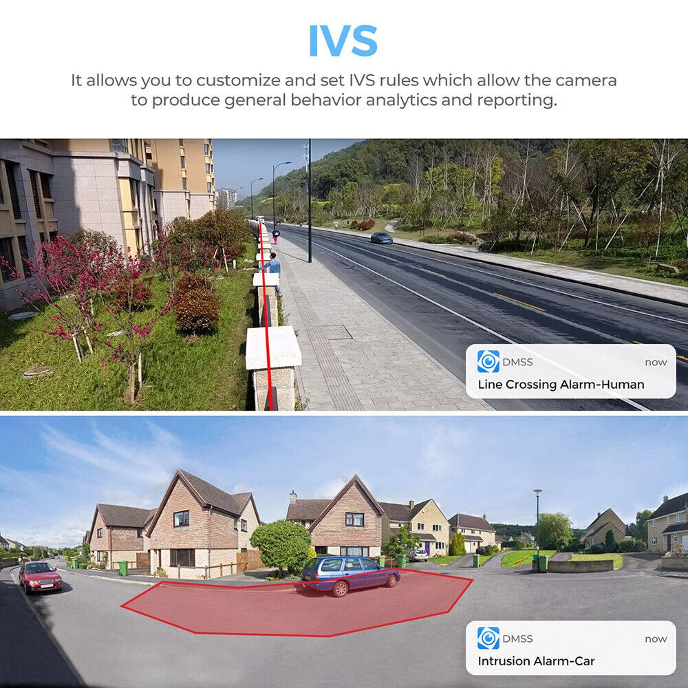 Product Description Note*: Original Dahua English version and Firmware upgradeable. Features > Outputs 180° wide angle splicing image. > Outputs max. 8 MP (4096 × 1860) 20 fps. > H.265 codec, high compression rate, ultra-low bit rate. > Built-in IR LED and warm light, the max. IR illumination distance is 25 m and warm light distance is 20m. > ROI, SMART H.264 +/H.265+, AI H.264/H.265, flexible coding, applicable to various bandwidth and storage environments. > WDR, 3D NR, HLC, BLC, digital watermarking, applicable to various monitoring scenes. > Alarm: 1 in, 1 out; audio: 1 in, 1 out; supports max. 256 G Micro SD card; built in dual Mic; built in speaker, support two-way talk. > 12 VDC/PoE power supply, easy for installation. > IP67 protection. > Sound and light alarm (red and blue lights) > EPTZ: Enlarge and track the targets of intelligent alarms. > SMD 4.0. > One-tap arming/disarming through alarm input. System Overview Dahua WizSense 3 Series Network Camera greatly saves on bandwidth and storage space through its AI Coding technology. Driven by its advanced deep learning algorithms, the camera supports intelligent functions such as perimeter protection, smart motion detection (SMD), Quick Pick, making it easy and convenient to use. Starlight technology and its large aperture lens also allow the camera to produce clear, vivid images even in poor lighting conditions. Functions Siren and Light Active Deterrence Dahua siren and light active deterrence network camera supports the light alarm and voice alarm when perimeter event occurs, to realize the deterrence and effective intervention. The camera is built in multiple voices for selection, and supports customized voice importing. Smart Dual Light Dahua Smart Dual Light technology adopts smart algorithm to detect targets. Usually, the IR illuminator is on at night; when the target appears in the monitoring area, the warm light is on, and the camera records the full-color video and information of key events. That is, the camera links snapshot and video with full-color image. When the target is out of the monitoring area, the warm light is off and the IR illuminator is on, which reduces light pollution efficiently. SMD 4.0 Dahua Smart Motion Detection technology works with intelligent algorithms to classify targets that trigger motion detection alarms. It filters out objects that are not targets, such as small and large animals, to avoid triggering false alarms. With an AI NVR, Quick Pick technology becomes available, allowing you to easily search for and pick out human and vehicle targets from SMD event videos, prioritizing the highest matches. EPTZ With advanced target detection and tracking algorithms, Dahua EPTZ technology can simultaneously zoom in and track multiple humans and vehicles that trigger alarms. It provides rich details and a panoramic view at the same time One-tap Disarming Dahua One-tap Disarming function, which is convenient and easy for operation, is the switch for event linkage. Customers can close and recover event linkage through mobile App, which meets multi-scenarios needs. Cyber Security Dahua network cameras employ a series of security technologies, including security authentication and authorization, access control protocols, trusted protection, encrypted transmission and encrypted storage. These technologies improve the camera's defense against external cyber threats and prevent malicious programs from compromising the device. Protection (IP67, wide voltage) IP67: The camera passes a series of strict test on dust and soak. It has dust-proof function, and the enclosure can work normally after soaking in 1 m deep water for 30 minutes. Wide voltage: The camera allows ±30% input voltage tolerance (wide voltage range), and it is widely applied to outdoor environment with instable voltage Specifications Camera Image Sensor Dual 1/2.7" CMOS Max. Resolution 4096 (H) × 1860 (V) ROM 128 MB RAM 1 GB Scanning System Progressive Electronic Shutter Speed Auto/Manual 1/3 s–1/100,000 s Min. Illumination 0.005 lux F1.4 (Color, 30 IRE) 0.0005 lux F1.4 (B/W, 30 IRE) 0 lux (Illuminator on) S/N Ratio >56 dB Illumination Distance Up to 25 m (82.02 ft) (IR LED) Up to 20 m (65.62 ft) (Warm light) Illuminator On/Off Control Auto; Manual Illuminator Number 2 (IR LED); 2 (Warm light) Angle Adjustment Pan: 0°–360° Tilt: 0°–77° Rotation: 0°–360° Lens Lens Type Fixed-focal Lens Mount M12 Focal Length 2.8 mm Field of View Horizontal: 180°; Vertical: 86° Max. Aperture F1.4 Iris Control Fixed Close Focus Distance 0.8 m (2.62 ft) DORI Distance Lens Detect Observe Recognize Identify 2.8 mm 50.6 m (166.01 ft) 20.2 m (66.27 ft) 10.1 m (33.14 ft) 5.1 m (16.73 ft) Intelligence IVS (Perimeter Protection) Intrusion, tripwire (the two functions support the classification and accurate detection of vehicle and human) SMD SMD 4.0 Quick Pick With AI NVR, quickly pick up the human/vehicle targets that users are interested in from SMD events. Smart Search Work together with Smart NVR to perform refine intelligent search, event extraction and merging to event videos. EPTZ Enlarge and track the targets of intelligent alarms Video Video Compression H.265; H.264; H.264H; H.264B; MJPEG (Only supported by the sub stream) Smart Codec Smart H.265+; Smart H.264+ AI Coding AI H.265; AI H.264 Video Frame Rate Main stream: 4096 × 1860 (1–20 fps ) Sub stream: 1200 × 530 (1–20 fps) Third stream: 1920 × 860 (1–20 fps) *The values above are the max. frame rates of each stream; for multiple streams, the values will be subjected to the total encoding capacity. Stream Capability 3 streams Resolution 4096 × 1860; 3632 × 1632; 3040 × 1368; 1200 × 530; 1920 × 860; 960 × 432 Bit Rate Control CBR/VBR Video Bit Rate H.264: 6 kbps –16384 kbps H.265: 6 kbps –16384 kbps Day/Night Auto(ICR)/Color/B/W BLC Yes HLC Yes WDR 120 dB Scene Self-adaptation (SSA) Yes White Balance Auto; natural; street lamp; outdoor; manual; regional custom Gain Control Au