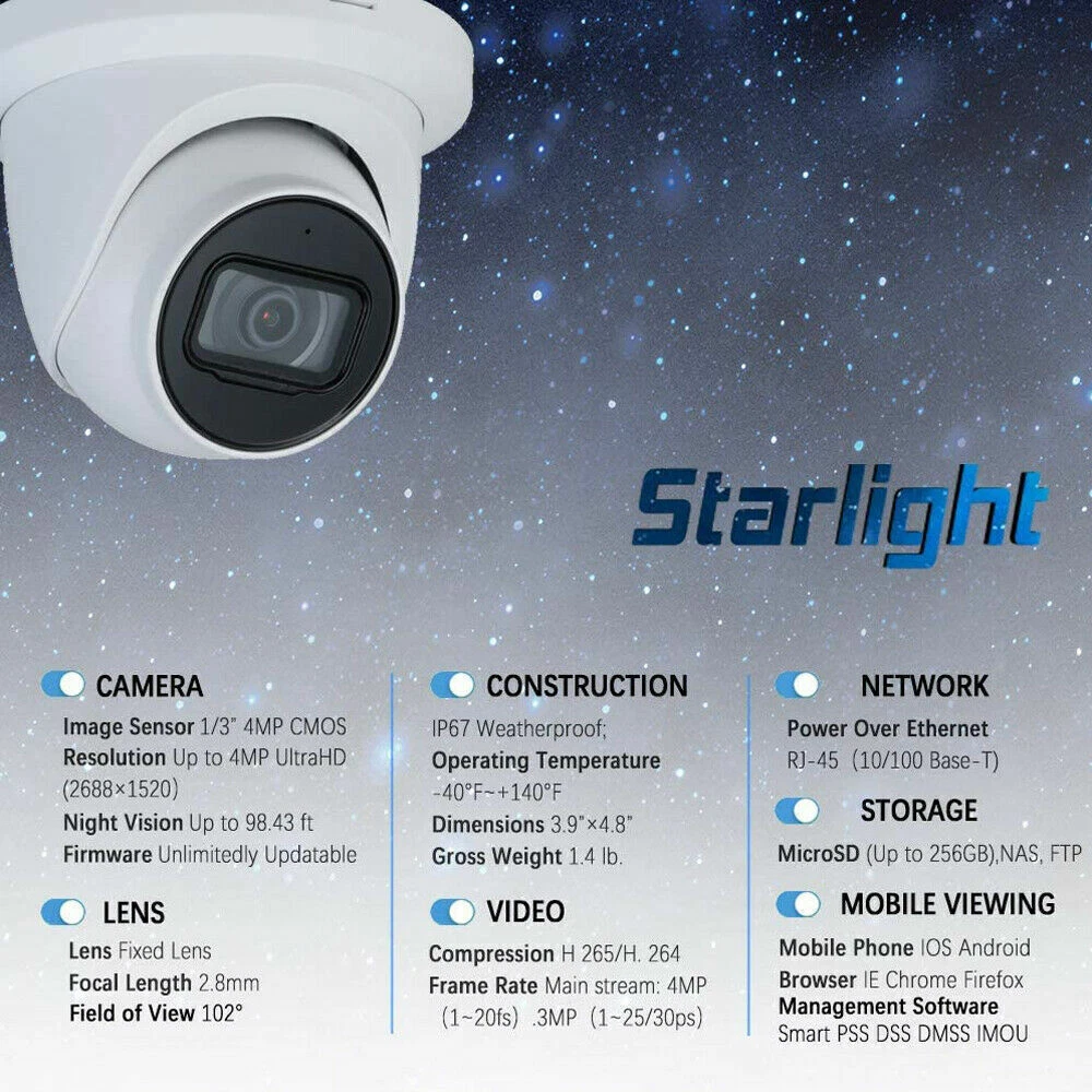 Product Description 4MP Lite IR Fixed-focal Eyeball Network Camera Features: 4MP, 1/3” CMOS image sensor, low illuminance, high image definition Outputs 4MP (2560 × 1440)@25/30 fps, Max. supports 4MP (2688 × 1520) @ 20 fps H.265 codec, high compression rate, ultra-low bit rate Built-in IR LED, max IR distance: 30 m ROI, SMART H.264+/H.265+, flexible coding, applicable to various bandwidth and storage environments Rotation mode, WDR, 3D NR, HLC, BLC, digital watermarking, applicable to various monitoring scenes Intelligent detection: Intrusion, tripwire Abnormality detection: Motion detection, video tampering,no SD card, SD card full, SD card error, network disconnected, IP conflict, illegal access, voltage detection Supports max. 256 GB Micro SD card, built-in Mic 12V DC/POE power supply IP67 protection Specifications: Camera Image Sensor 1/3” 4Megapixel progressive CMOS Max. Resolution 2688 (H) × 1520 (V) ROM 128 MB RAM 128 MB Scanning System Progressive Electronic Shutter Speed Auto/Manual 1/3 s–1/100000 s Min. Illumination 0.008 Lux @ F1.6 S/N Ratio > 56 dB Illumination Distance 30 m (98.43 ft) Illuminator On/Off Control Auto/Manual Illuminator Number 2 (IR LED) Pan/Tilt/Rotation Range Horizonal: 0°–360° Vertical: 0°–78° Rotation: 0°–360° Lens Lens Type Fixed-focal Mount Type M12 Focal Length 2.8 mm 3.6 mm Max. Aperture F1.6 F1.6 Field of View 2.8 mm: Horizonal 102.0° × Vertical 55.0° × Diagonal 121.0° 3.6 mm: Horizonal 84.0° × Vertical 45.0° × Diagonal 100.0° Iris Type Fixed Close Focus Distance 2.8 mm: 0.9 m (2.95 ft) 3.6 mm: 1.6 m (3.61 ft) DORI Distance Lens Detect Observe Recognize Identify 2.8 mm 56 m (183.73 ft) 22.4 m (73.49 ft) 11.2 m (36.75 ft) 5.6 m (18.37 ft) 3.6 mm 80 m (262.47 ft) 32.0 m (104.99 ft) 16.0 m (52.49 ft) 8.0 m (26.25 ft) Smart event IVS Tripwire; intrusion Video Video Compression H.265; H.264; H.264B; MJPEG (only supported by the sub stream) Smart Codec Smart H.265+/ Smart H.264+ Video Frame Rate Main stream: 2688 × 1520 (1 fps-20 fps) 2560 × 1440 (1 fps-25/30 fps) Sub stream: 704 × 576 (1 fps-25 fps) 704 × 480 (1 fps-30 fps) Stream Capability 2 streams Resolution 2688 × 1520 (2688 × 1520); 2560 × 1440 (2560 × 1440); 2304 × 1296 (2304 × 1296); 1080p (1920 × 1080); 1.3M (1280 × 960); 720p (1280 × 720); D1 (704 × 576/704 × 480); VGA (640 ×480); CIF (352 × 288/352 × 240) Bit Rate Control CBR/VBR Video Bit Rate H.264: 32 kbps–6144 kbps H.265: 12 kbps–6144 kbps Day/Night Auto(ICR)/Color/B/W BLC Yes HLC Yes WDR 120 dB White Balance Auto/natural/street lamp/outdoor/manual/regional custom Gain Control Auto/Manual Noise Reduction 3D NR Motion Detection OFF/ON (4 areas, rectangular) Region of Interest(RoI) Yes (4 areas) Smart Illumination Yes Image Rotation 0°/90°/180°/270° (Supports 90°/270° with 2688 × 1520 resolution and lower.) Mirror Yes Privacy Masking 4 areas Audio Built-in MIC Yes Audio Compression G.711A; G.711Mu; G.726 Alarm Alarm Event No SD card; SD card full; SD card error; network disconnection; IP conflict; motion detection; video tampering; tripwire; intrusion; illegal access; voltage detection; audio detection; safety exception Network Network RJ-45 (10/100 Base-T) SDK and API Yes Cyber Security Video encryption; firmware encryption; configuration encryption; Digest; WSSE; account lockout; security logs; IP/MAC filtering; generation and importing of X.509 certification; syslog; HTTPS; 802.1x; trusted boot; trusted execution; trusted upgrade Protocol IPv4; IPv6; HTTP; TCP; UDP; ARP; RTP ; RTSP; RTCP; RTMP; SMTP; FTP; SFTP; DHCP; DNS; DDNS; QoS; UPnP; NTP; Multicast; ICMP; IGMP; NFS; PPPoE; Bonjour Interoperability ONVIF (Profile S/Profile G/Profile T); CGI; P2P; Milestone; Genetec User/Host 20 Storage FTP; SFTP; Micro SD Card (support max. 256 GB); NAS Browser IE Chrome Firefox Management Software Smart PSS; DSS; DMSS Mobile Phone IOS; Android Certification Certifications CE-LVD: EN62368-1 CE-EMC: Electromagnetic Compatibility Directive 2014/30/EU FCC: 47 CFR FCC Part 15, Subpart B UL/CUL: UL60950-1 CAN/CSA C22.2 No.60950-1-07 Power Power Supply 12V DC/PoE (802.3af) Power Consumption < 6.6W Environment Operating Conditions -40°C to +60°C (-40°F to +140°F)/less than ≤ 95% Storage Temperature -40°C to +60°C (-40°F to +140°F) Protection IP67 Structure Casing Metal Dimensions 99.1 mm × Φ121.9 mm (3.9" × Φ4.8") Net Weight 0.48 kg (1.1 lb) Gross Weight 0.65 kg (1.4 lb) Shipping & Handling: Warranty & Return Policy: Feedback & About Us: About Customs duty/Tax: 1. Item will be shipped out within 5 business days after the payment. Please check and make sure your address is correct before payment. (In order to make sure you can receive the items successfully, please provide your phone number as well.) 2. The items will be shipped via Post Office Airmail. It usually takes around 2 to 3 weeks to United Stated, United Kingdom, Australia, Canada and some European countries. But for other countries, it may need 4-6 weeks to deliver the parcel. It may take longer time if there is abnormal weather condition or customs control issue. Please kindly contact us for refund or assistance if the item doesn’t receive during the time. (If you want a faster service, please contact us before your bidding or purchase.) 3. Please contact us for further assistance if you don't receive the item on time. (Before opening up any "Item not received" dispute/claim, please contact us for a full refund if you don't get the package 35 days after your cleared payment.) 1. All items will be tested or checked carefully and packaged in good condition before sending out to you. Some faulty items might happen especially after overseas transportation. We offer a replacement warranty within 30 days from the date of receipt. 2. You will be responsible for the returning shipping cost, and we will ship the replacement at our cost after receiving the returned item. Please contact us for details before sending the item back to us