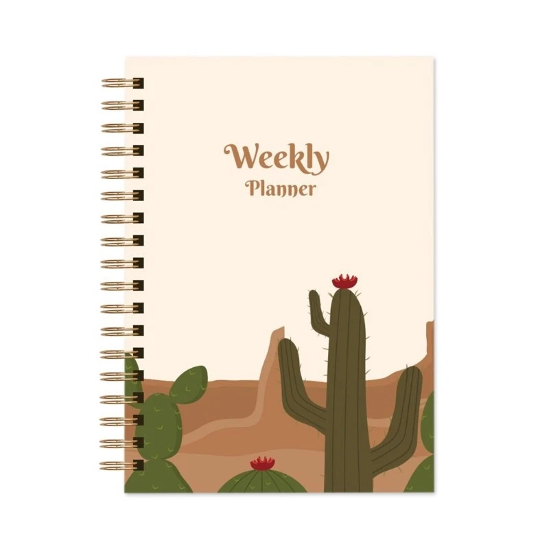 Daily Weekly Planner Agenda Notebook Weekly Goals Schedules Stationery Features: and high Designed with a beautiful cover, this notebook is both stylish and functional. The original adds a touch of elegance to your work desk or study space. Ideal for students, professionals, and anyone who needs to stay on top of their daily tasks. This notebook is for taking notes, making to-do lists, and keeping track of important dates and deadlines. Stay organized and productive with our daily planner notebook featuring thick 100gsm paper that ensures smooth writing without any bleeding. for keeping all your tasks, appointments, and notes in place. Whether you're at home, school, or the office, this notebook is for all your note-taking needs. Use it to jot down ideas during meetings, keep track of homework assignments, or plan out your daily schedule. With its sturdy double binding, our notebook allows for easy page turning and prevents pages from falling out. Plus, the compact size makes it easy to carry around wherever you go. Stay organized and stylish with our daily planner notebook! Specifications: Paper Size: 210x148mm Floral Cactus Cactus Brown, Cactus Blue (optional) Package Includes: 1 x Planner note: 1.The real color of the item may be slightly different from the pictures shown on website caused by many factors such as brightness of your and light brightness. 2.Please allow slight manual measurement for the data.