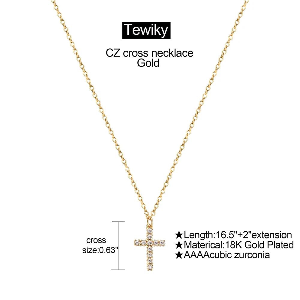 Tewiky Cross Necklace for Women, Dainty Simple 14k Gold Plated Cross Pendant Cute Necklaces for Women Gold Jewelry Cross Necklace Design :This fashion necklace has a simple design and easy to wear. The cross is dainty and cute. You will stand out with wearing this necklace in any occasions, such as work, vocation, party, travel, etc. Size And Package :The length of the necklace is 17"+2" with extension,Our dainty jewelry packaged with a delicate gift box ,You will get 1 dainty cross necklace in a wonderful small box. Gold Necklaces Material :18K gold plated over high quality brass plated to ensure a long without faded, that is nickel free, lead free, and hypoallergenic. First Communion Gifts Applicable Occasions :Our dainty necklace is suitable for many occasions,etc party, wedding, ceremony, graduation, dating and vocation.Great gifts for confirmation,first communion,baptism. After Sales Service :To Ensure Your Complete Satisfaction, We Offer a 60-Day No-Risk Return Policy and 90-Day Warranty. Condition:Brand New Diamond Cross Necklace Color:Silver/Gold/Rose Gold Material: Comes in silver-plated-brass/gold-plated-brass with a shiny lifetime protective finish.Tarnish-resistant then can't be faded in a long time.Nickel free,lead free and hypoallergenic,safe to wear on your neck. Notes: 1) Avoid direct contact with heat, or expose under the sun. 2) Before showering, take out the accessories and keep it in a safe place. 3) Avoid solvents or chemicals like perfume or soap. Dry it with a clean towel if gets wet. 4) Clean in a secure location, not the rim of a sink where a piece may slip down the drain. 5) Use only a soft brush, never sharp or hard objects, to remove dirt or particles. TEWIKY provided 90 days after-sales service,Ensure you a pleasant shopping from TEWIKY. Don’t hesitate to add it to your cart and buy Now!! Shipping We offer FREE shipping on all orders! We ship within Three business days of payment, usually sooner. We use a selection of shipping services such as UPS, FedEx, USPS etc. We only ship to the lower 48 states, no APO/FPO addresses or PO Boxes allowed. Local pickups and combined shipping options are not provided at this time. Return You can return a product for up to 30 days from the date you purchased it. Any product you return must be in the same condition you received it and in the original packaging. Please keep the receipt. Feedback Customer satisfaction is very important to us. If you have any problem with your order, please contact us and we will do our best to make you satisfied. Contact Us If you have any queries, please contact us via ebay. We usually respond within 24 hours on weekdays. Please visit our eBay store to check out other items for sale! Thank you for shopping at our store.