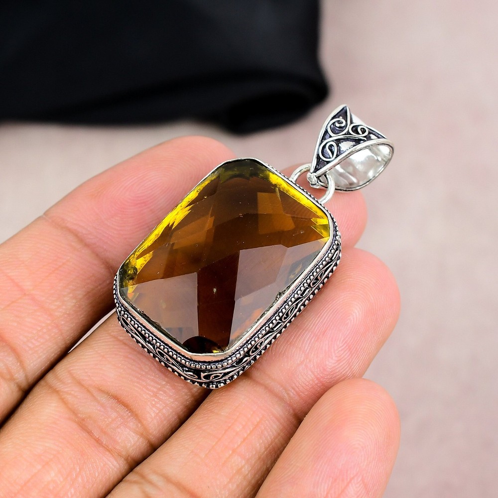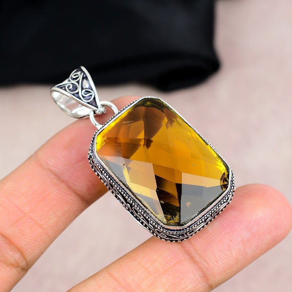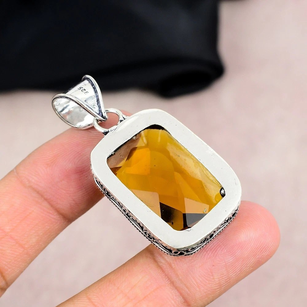 Style:PendantPendant/Locket Type:Same As PictureCut Grade:N/ATheme:Beauty, Bohemian, Ethnic, Halloween, Love, NatureMaterial:GemstoneOccasion:Anniversary, Birthday, Christening, Christmas, Engagement, Father's Day, Graduation, Mother's Day, Valentine's Day, WeddingFeatures:HandmadeCountry/Region of Manufacture:IndiaColored Diamond Intensity:N/ACertification:N/ANumber of Diamonds:N/ABase Metal:Sterling SilverNecklace Length:5"Main Stone:CitrineDiamond Clarity Grade:N/ACollection:HandmadeMain Stone Creation:NaturalDiamond Color Grade:N/AMain Stone Color:YellowColor:SilverMain Stone Shape:EmeraldPendant Shape:Same As PictureMain Stone Treatment:Not EnhancedBrand:HandmadeClosure:Same As PictureCountry of Origin:IndiaType:PendantNumber of Gemstones:1Total Carat Weight:10 carat and aboveChain Type:N/AMetal:Sterling SilverMetal Purity:925Secondary Stone:N/ASetting Style:Bezel