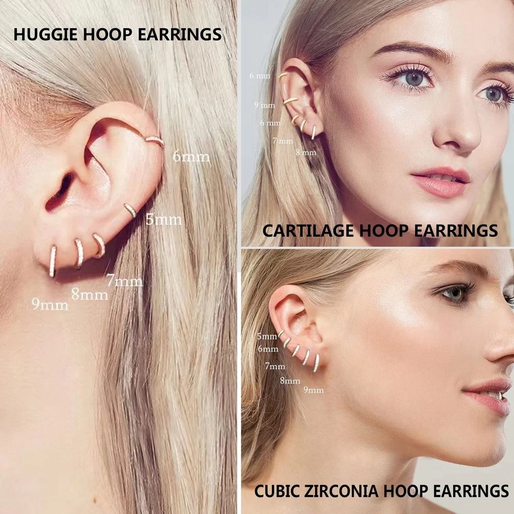 Dainty Tiny White Gold Huggie Hoop Earrings 5 Pairs Mini Cubic Zirconia Hoops...