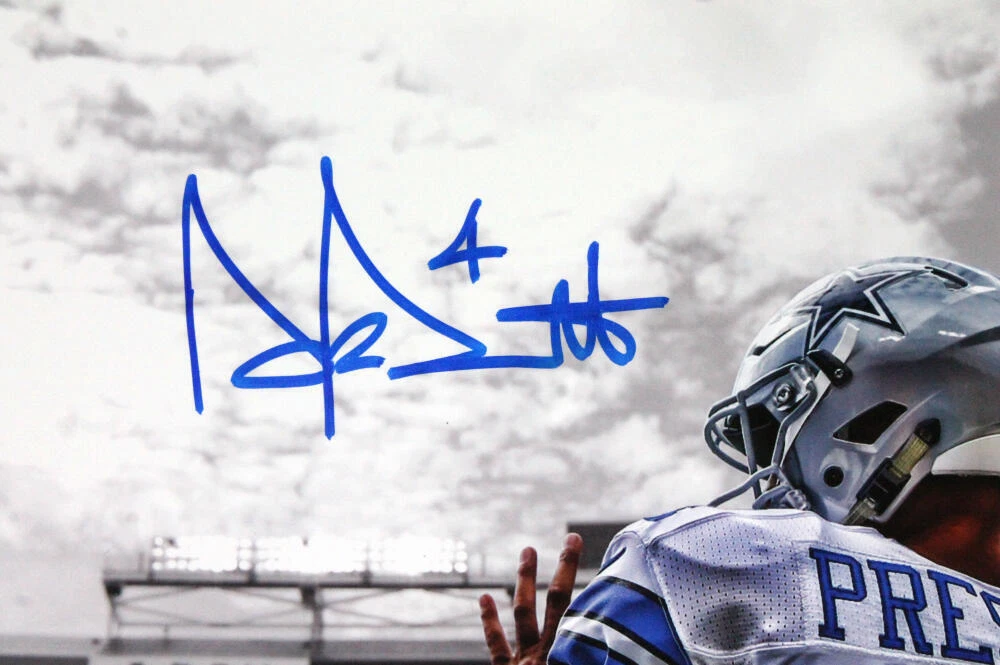 Dak Prescott Autographed Dallas Cowboys 8x10 Back Spotlight Photo-Beckett W Hologram *Blue This is a Hand Autographed 8x10 Photo of Dak Prescott of The Dallas Cowboys. This item has a Beckett Witnessed Authentication, which comes with a Beckett #'ed Sticker hologram and a generic beckett COA. You can view this item on the Beckett website and it shows when and where the item was signed. It was signed either at a public autograph appearance or a private signing. This is a stock photo of the item. Although you may not receive this exact item, the item you receive is virtually identical and brand new in great shape. We accept Paypal as well as all Major Credit Cards for purchase. We appreciate your interest in our items and we hope that we can make all transactions professional and satisfying. You can contact us through eBay with any questions or concerns. Taxes may be applicable at checkout. This listing created with GLETech Multiple Selling Channel tools.