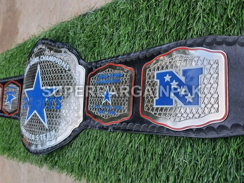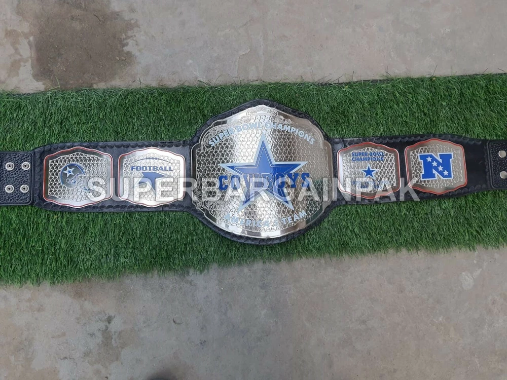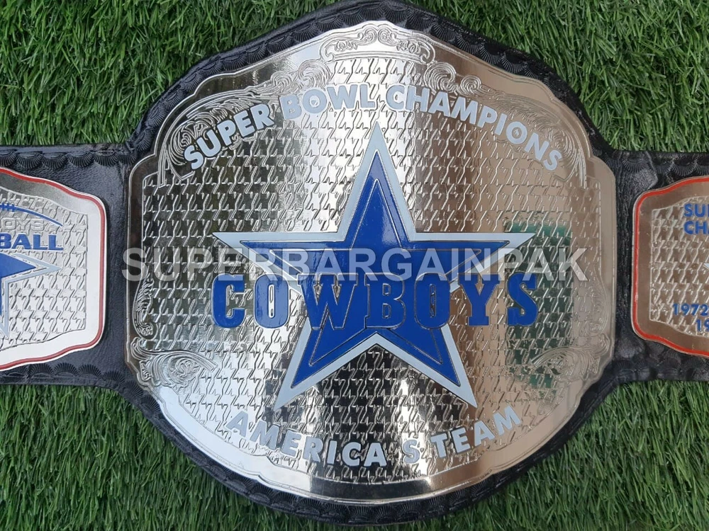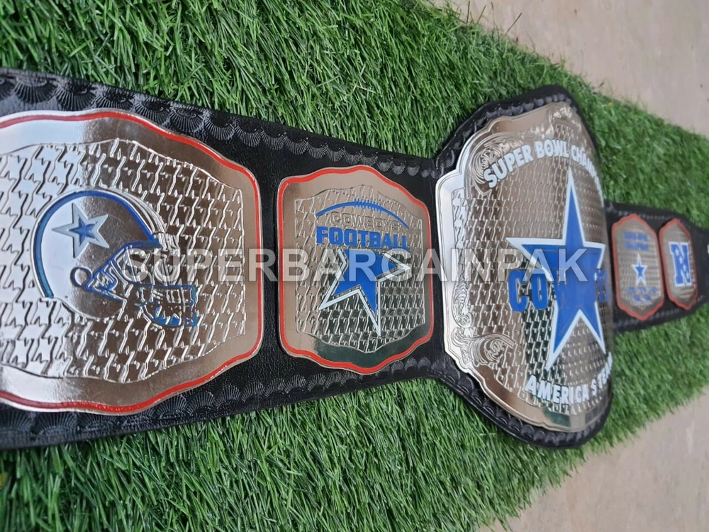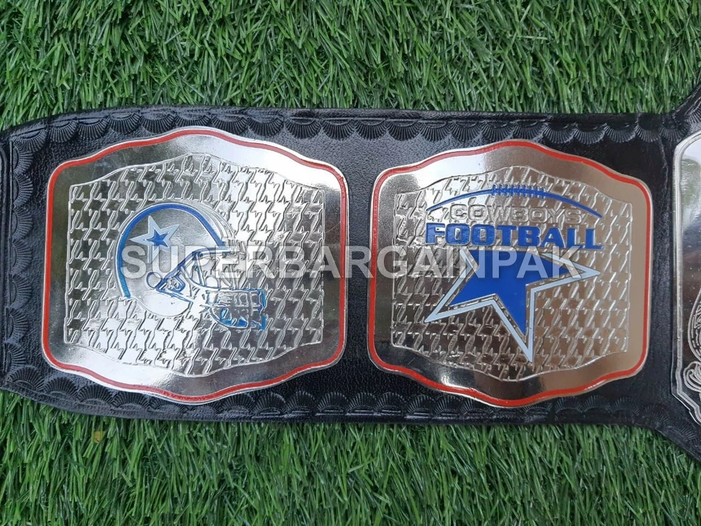 Welcome to our shop ------------------------------------------- We are specialist in manufacturing handmade products:: Our wide range of products include: >>>>Championship Belts WWE | WWF | AEW | UFC | WBC | WCW Product Description ** Dallas Cowboys Championship Belt *** Plate Metal: Brass (Zinc available on request with additional cost) Strap: 100% Leather Largest Waist Size: Fits upto 46'' Belt Length: ~50" Weight: 4.17 lbs | 2.01 Kg Plate Thickness: 2mm (4mm Version available on demand with additional cost) ::The belt is well crafted and manufactured to meet the quality demands of fans:: Get your hands on this marvelous piece now! Note: If you need further details kindly inbox us, we will try to be as responsive as possible. ------------------------------------------- Return Policy: Generally we don't have much complains on our products and we make sure to 100% satisfy our clients. We send the product in well Bubble Wrapped packaging so there is highly unlike chance of getting damaged item. In case there is a damage, we will try to give partial refund or you can ask for full refund within 30 days after returning the belt to origin. NOTE: 1. If you have placed the order by mistake or you have purchased a wrong item then we are not going to refund that. 2. Buyer will pay the shipping fee of returning the belt. ------------------------------------------- Happy Shopping! :)