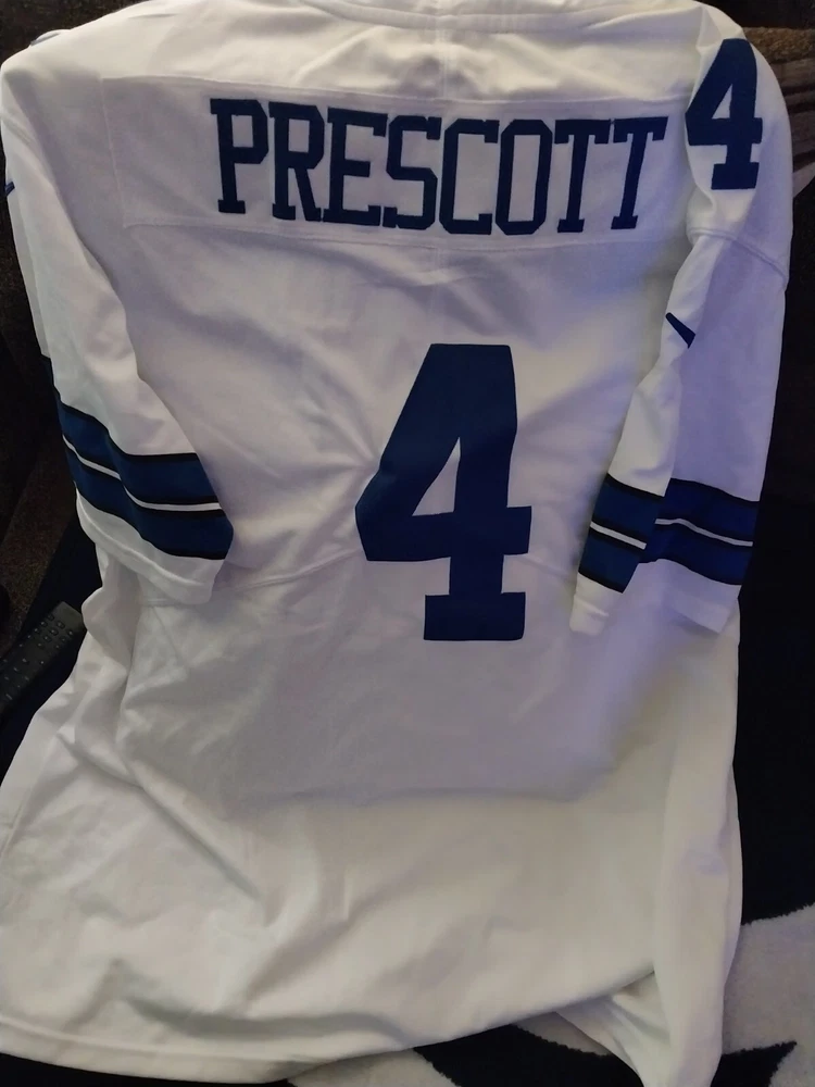Show your support for the Dallas Cowboys with this officially licensed Nike jersey featuring the name and number of star quarterback Dak Prescott. Made for men in size XL, this white jersey is perfect for any fan of the National Football League during regular season games. Represent your favorite team and player with this high-quality, branded jersey that is perfect for any NFL event or tournament. Whether you're watching the game at home or in the stands, this jersey is a must-have for any true football fan. Get yours today!