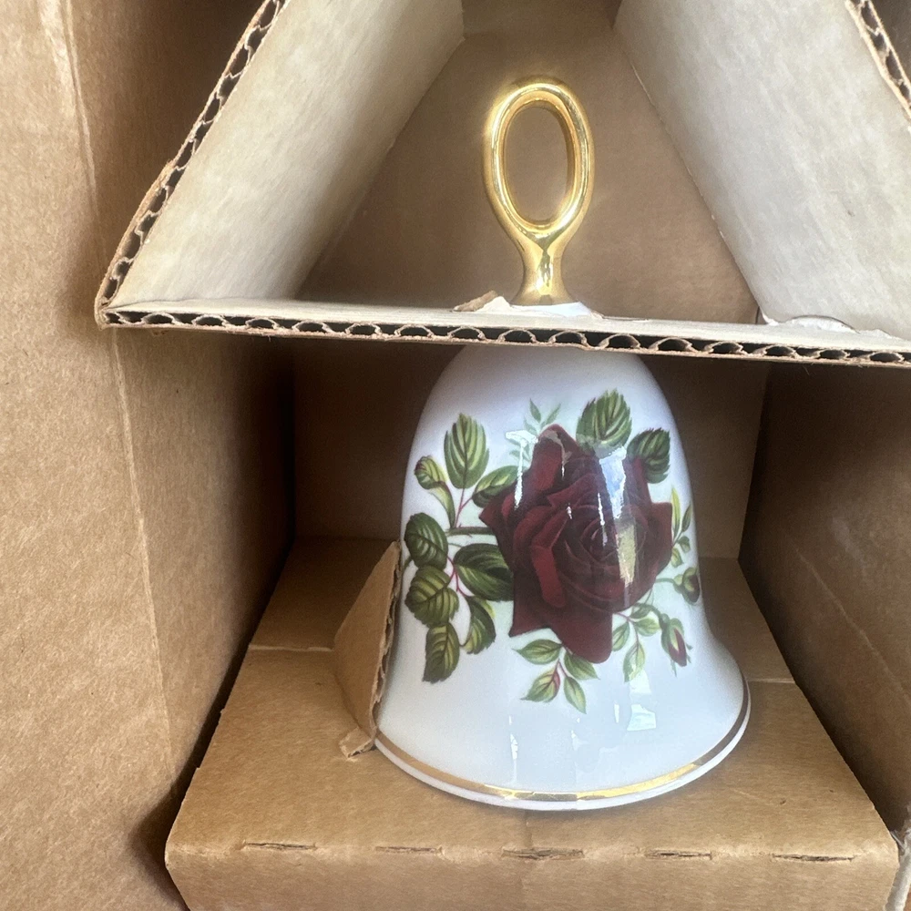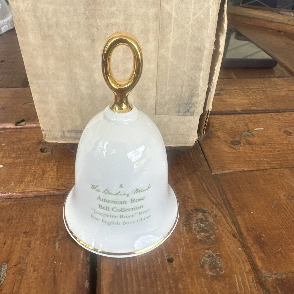 This beautiful Danbury Mint bell features the Josephine Bruce Rose pattern, with delicate pink, white, and gold colors. It is perfect for collectors of all occasions, and its American style adds a touch of elegance to any decor. Made of high-quality porcelain and crafted in the United Kingdom, this bell is a must-have for any decorative collectibles enthusiast. This is in original box does not have paper with it.