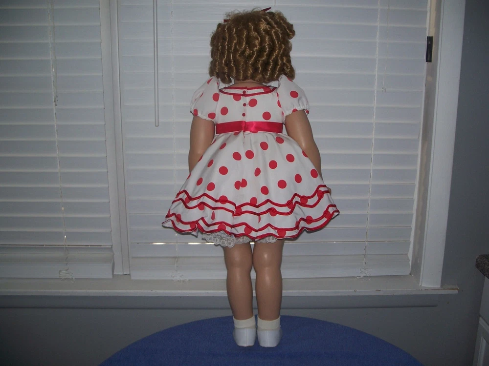 This is a Danbury Mint Shirley Temple Playpal Companion Doll 36". Doll is in good played with condition. She has a tiny spot on the back of her left shoulder. Her headband & waist band of panties are stretched. Also the bottom soles of her shoes are missing. Items are sold as is no returns, so please ask any questions you have before bidding. If there is a problem with your item please contact me Immediately & we can try to work out a solution. Payment due immediately. Any unpaid items will be relisted after 4 days, unless we have agreed on a later date of payment. Items will be shipped within 3 Business Days of cleared payment & I ship only to address listed in Ebay at time of purchase. If you need it shipped to a different address please change the address in Ebay at checkout, before paying.
