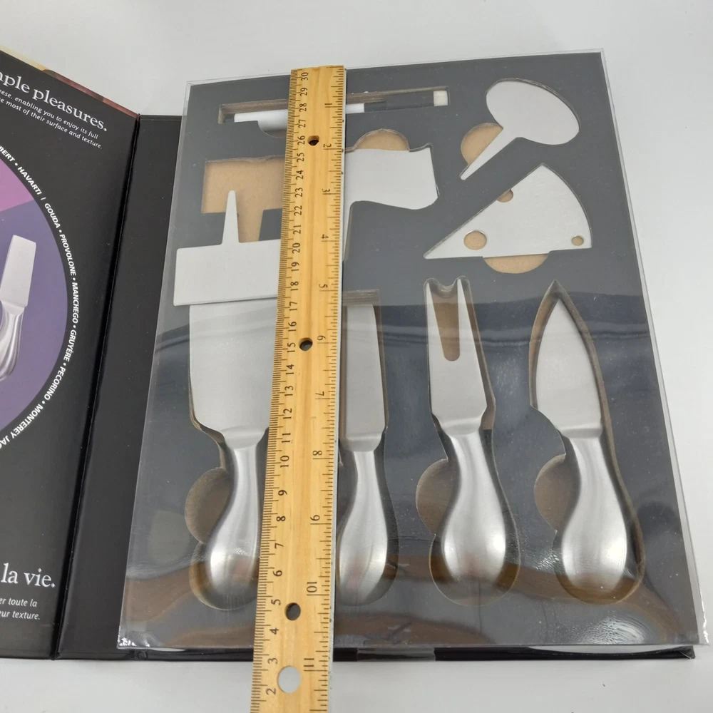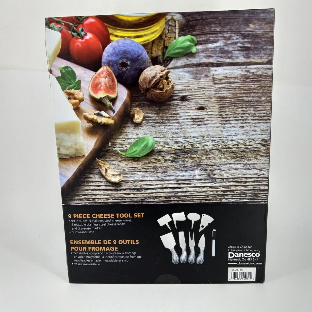 WE APPRECIATE OUR CUSTOMERS THANK YOU FOR SHOPPING WITH US!! Danesco 9 Piece Stainless Steel Cheese Tool Set Platter Charcuterie New Boxed This Danesco 8-piece cheese knife set is perfect for any occasion. The set includes four stainless steel cheese knives and four stainless steel cheese labels, all presented in a sleek silver color. Each knife is 5 inches in length and the set is made of high-quality stainless steel, ensuring durability and longevity. Whether you're entertaining guests or enjoying a quiet night in, this cheese knife set is a must-have for any kitchen. The elegant design and sturdy construction make it a great addition to any serving arsenal. The set is made in China and features a stainless steel handle for added support. *Please look at pictures as they are part of the description/details. *Good Preowned Condition *Thanks for looking! Please remember items listed as vintage or used will typically show age appropriate wear. I have provided lots of photos for you to see the general condition of each item. If you would like any further photos or information, please contact me and I will be happy to try and help. I do my best to describe items accurately. Pictures are considered part of the description. Cameras and/or computers can sometimes slightly alter colors. Any measurements should be considered approximate. If you need an exact measurement, please ask. Terms and Conditions : Once a purchase has been made, it is legally binding contract. Payments: Payment is due when purchase is made, Thank you for your prompt payment. *If payment is not received within 4 days of purchase, then a Non-Paying Buyer Dispute will be filed, and eBay may mark it against your account. SHIPPING: We ship daily (Mon-Fri not to include holidays) and will ship within two business day of receiving payment! I do accept returns if you are unhappy with your item for any reason. I ask that it be returned in the original condition you received it in. Please let me know right away if there is a shipping breakage. I will ask for photos of the box and item(s) to better prevent further breakages. Upon Receiving : If you are satisfied with your product(s), please leave some positive feedback. *We love hearing that you have received your purchase(s), and are content, delighted, and untroubled. *Once you receive your purchase(s), please inspect them for any damage during transit. Report any damage within 24hrs via eBay e-mail. Return Policy : You may return unworn, unwashed merchandise in its original condition with all tags attached. If you bought a brand-new item, it MUST be returned brand new (Sealed and Any returns MUST be sent back to us complete and in the same condition as delivered to you Unopened). Items must be in new or original condition (free of odor, markings etc.) and ready for resale. Any serial or product numbers must match the purchased item for refund. PLEASE NOTE that shipping will not be refunded . Upon time of purchase, you are agreeing to this return policy. CHECKOUT: Please make sure that your address on file with eBay is complete and correct as we must use the address you have with eBay. *If you have any questions about your purchase, delivery, or a possible product return; Please contact us immediately and directly through your eBay accounts message center! *We are Eco-Friendly, leaving the lightest possible impact on our environment! Whenever possible we will reuse packing material to aid with our Eco goals. Customer service and feedback: If you have any questions about your purchase, delivery, or a possible product return; Please contact us immediately and directly through your eBay account message center! Your satisfaction is our top priority! Our goal is to earn your 5-star 100% feedback. Thank You for buying from us!