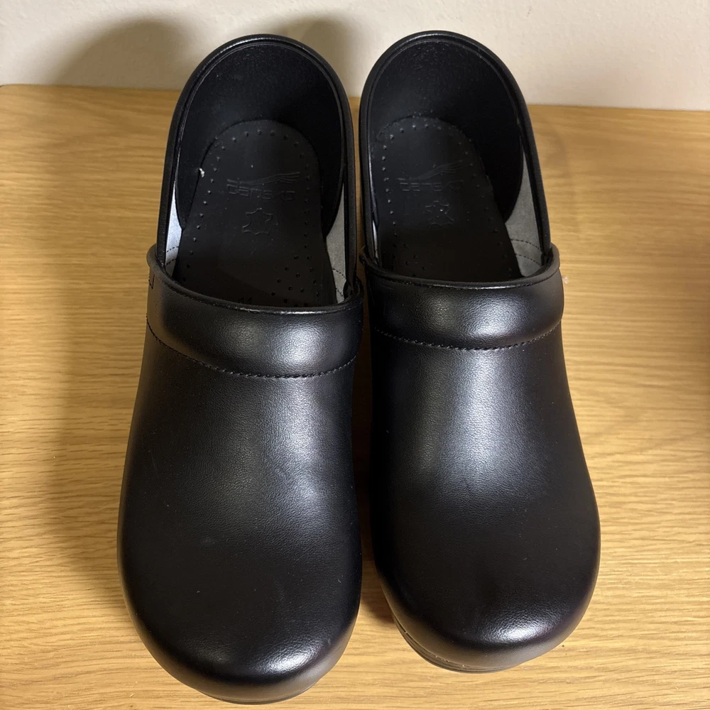 Brand new Dansko Classic black leather clogs in size 41. (See Dansko site for size conversions) Comes from a smoke-free home.