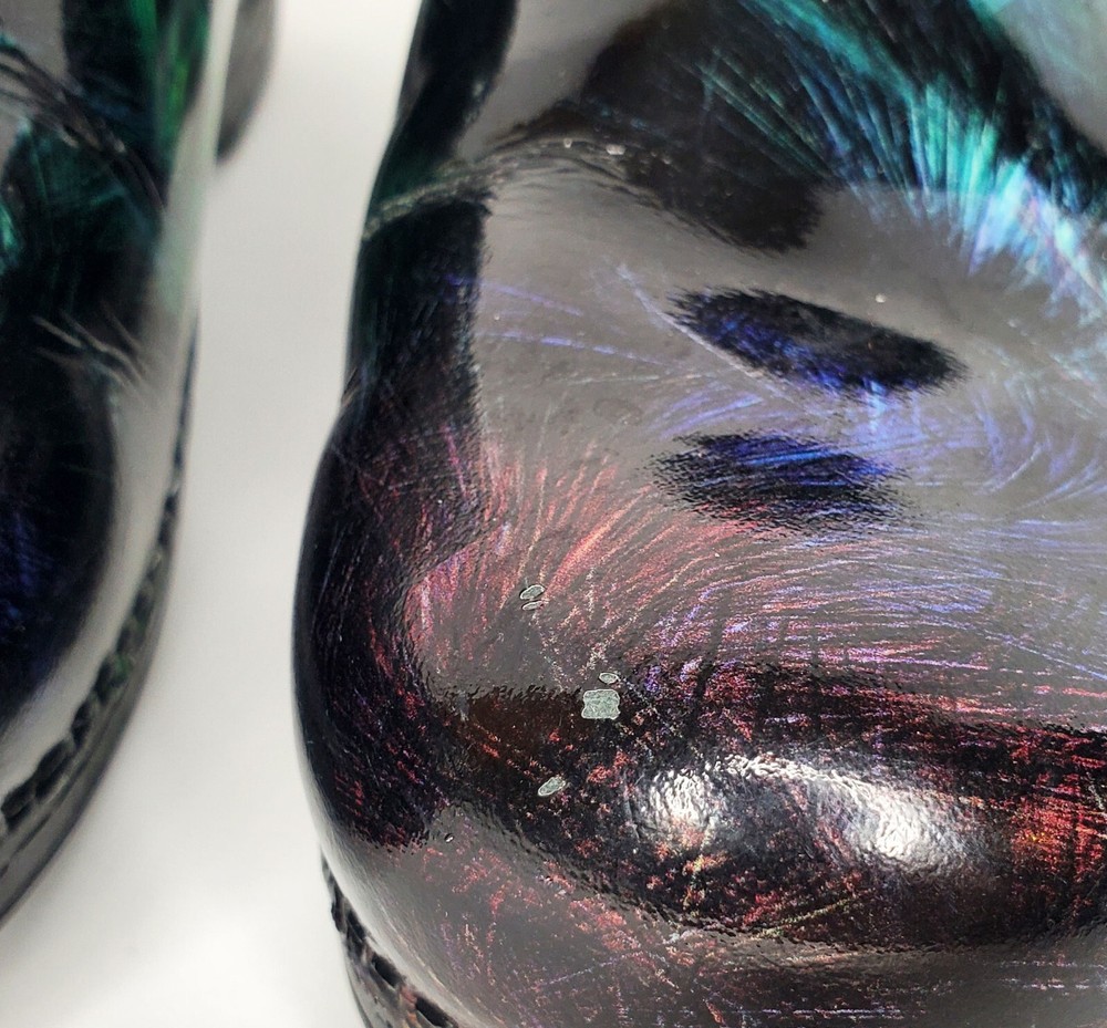 Dansko Patent Leather Multicolored Slip On Clog Comfort Nurse Shoes 41 US 10.5 Does have some wear. Please see photos. These shoes still have a lot of life left in them Slip Resistant Length heel to toe; 11 inches Width at wides part; 3.5 inches Heel height: 1.5 inches 19-3279