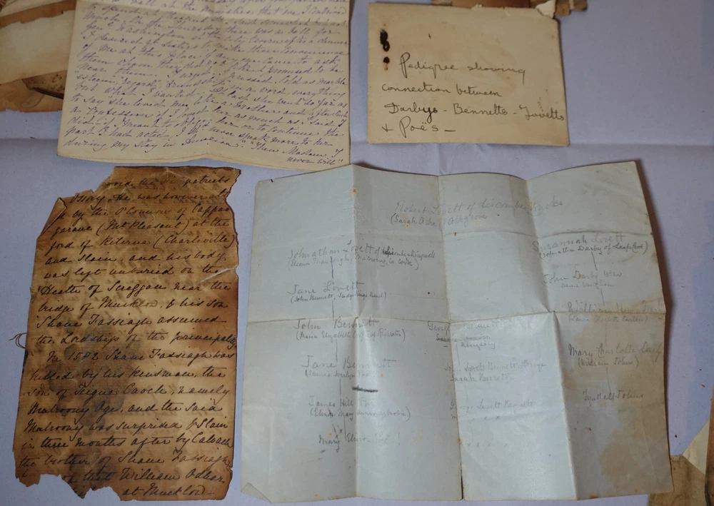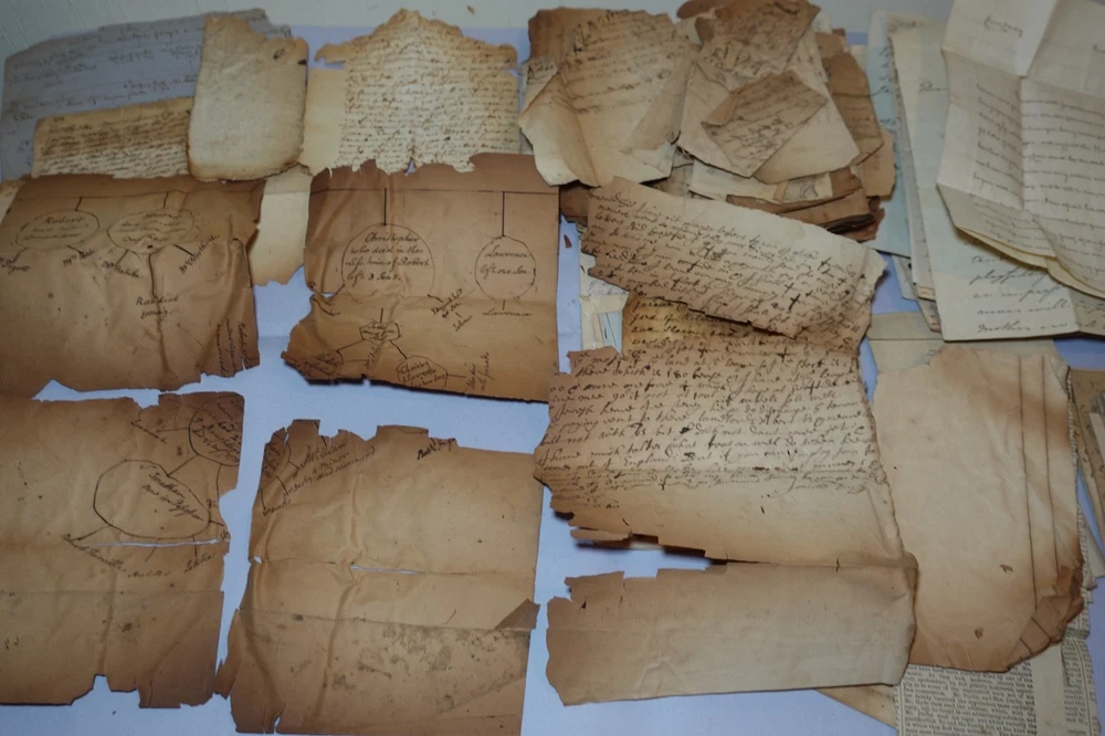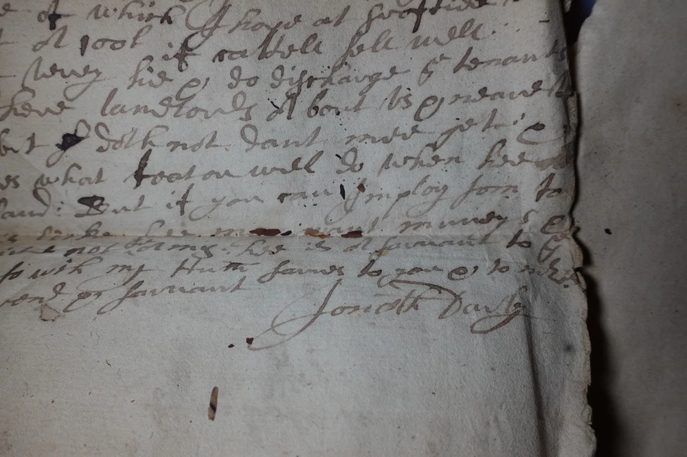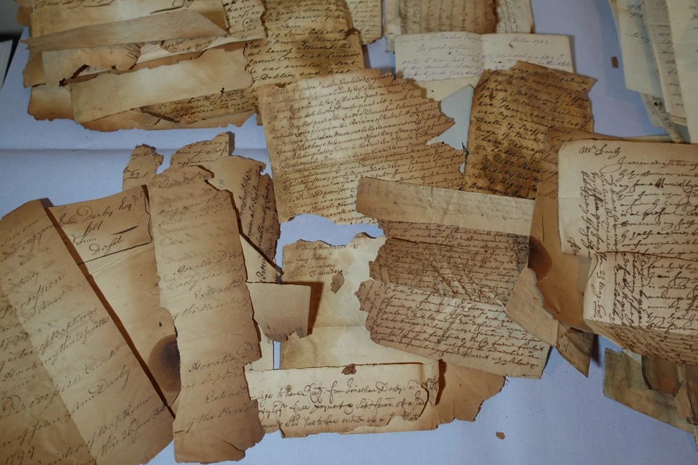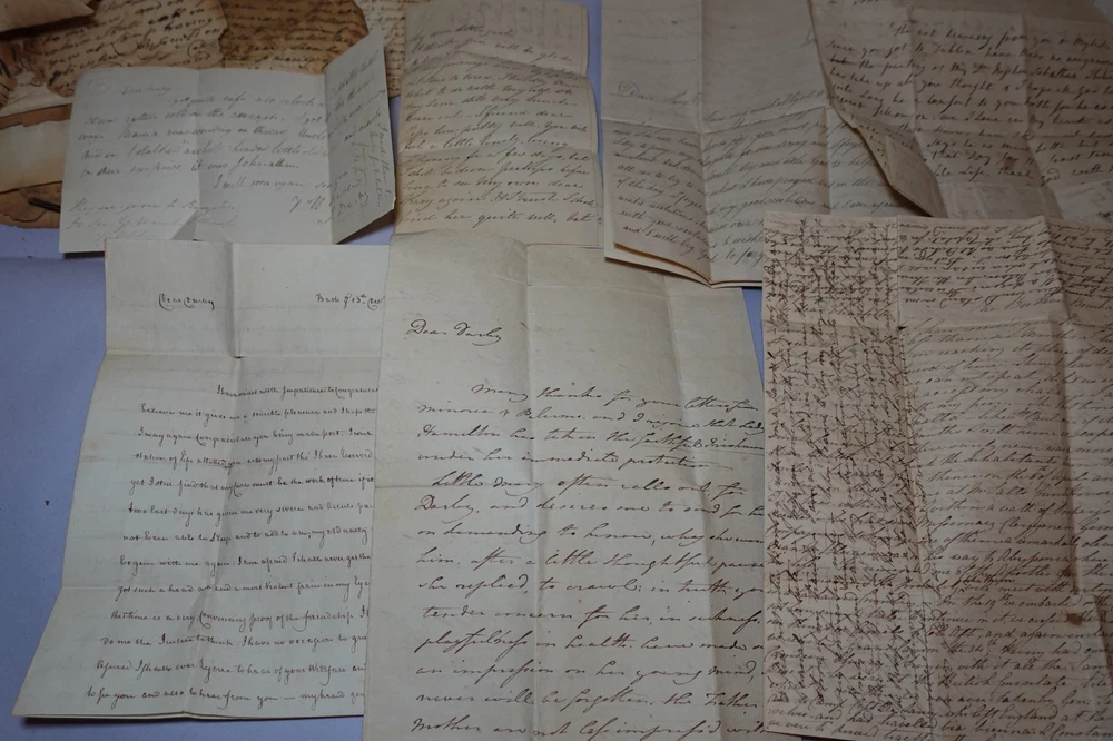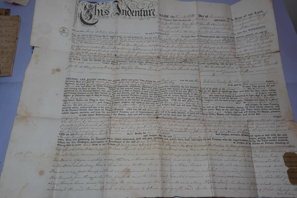 Darby Family Leap Castle Ireland 1660s-1860s Rare Original Historical Papers & Documents Lot All items are in Antique Condition with years ranging from 1662 to 1863. Included: 1. Handwritten Letter Signed by "St. Vincent" and addressed to "Dear Lady Hamilton." It is undated. St. Vincent was John Jervis, the 1st Earl of St. Vincent (1735-1823). Measures approximately 4 3/8" x 5 7/8". 1 Page. 2. Handwritten Letter Signed by "St. Vincent" and addressed to "My Dear Lady Hamilton." It appears to be dated "1 January 1799." Letter mentions Captain Darby of the HMS Bellerophon and the "Nile." Part of Darby's name is chipped on the right side of the letter. Measures approximately 4 3/8" x 5 7/8". 1 Page. 3. Envelope with writing on the outside, which mentions "Letter written to Darby dated Feb 27, 1799." It also mentions Gibraltar, the Bellerophon and St. Vincent. Measures approximately 3 5/8" x 5 3/4". Envelope is empty. 4. Folded Papers with "Copy Hollands Patent" and "1717" written on the outside. These papers have a heavy fold with extensive tearing along the folds. All pages have tearing. The fold is completely uneven. Folded, the item measures around 4 3/4" x 6 1/2". When the fold is straightened out, it is around 4" x 11 7/8". It is difficult to open these papers due to the fold and tearing. Papers are extremely fragile. There appears to be three pages The papers do mention "John Holland," "Ahancon," "Leap," and discusses land and likely property, I'm not sure. When carefully opening it up, it seems to measure 11 3/4" x 11 3/4" (give or take). I noticed that the top section of these papers was missing but found a loose segment which appears to be part of this missing area. It measures around 3 7/8" x 8 7/8". 5. Notebook with heavy darkening to the outside pages, possibly fire damage. Measures approximately 5 1/8" x 8 1/2". Around 60 Pages. This antique book is fragile with extensive tearing, chipping and wear. Pages have handwritten text which seem to be related to the Royal Navy. There are mentions of Pendants, various colors, flags, and words like "fleet" and "ships." No date or an indication on who wrote this information. This may have been written by a student learning about naval customs and meanings. I don't have any other information. Notebook has heavy wear and needs to be handled with care for preservation. 6. There are four segments of torn paper with family history written on them. Names include Christopher, Lawrence, Robert, Edward, and more. These were all part of the same document at one time. Segments measure around 6 1/4" x 6 1/2" (give or take). On the outside of the paper it reads, "Lovett Pedigree." The Lovetts and the Darbys were connected through marriage. 7. Undated Letter appearing to be addressed to "Honored Sir." Letter may be signed by Jonathan Darby, I'm not sure. Measures approximately 7 3/8" x 11 1/4. 1 Page. Document has heavy tearing. Top part of the letter is nearly torn loose at the fold. 8. 2 Letter Fragments which appear to be part of the same letter. It is signed by "John Holland." I don't see a date. Heavy tearing, folds and missing parts of the papers. 9. Letter Fragment signed by "John Holland." Heavy tearing, folds and missing part of the paper. This letter does not open and I don't want to risk further tearing by trying to open it. I don't see a date. 10. Letter Fragment signed by "John Holland." Heavy tearing, folds and missing part of the paper. 11. Letter Fragment addressed to "Mr. Darby." No signature. Measures approximately 2 1/2" x 6 3/4". Heavy tearing, folds and missing nearly all of the paper. 12. Letter Fragment with no identifiable names. Measures 7 1/2" x 11 3/4". Heavy tearing, folds and missing part of the paper. 13. Unknown Document mentions "John Holland" and "Jonathan Darby" and appears to discuss land/property. It is four pages torn into two segments. Multiple years mentioned including 1666 and 1742. Segments measure around 7" x 9" (give or take). Heavy tearing, folds, chipping and missing parts of the paper. 14. Letter signed by "John Holland" addressed to "Darby." Measures approximately 6 7/8" x 11 1/2". 1 Page. Heavy tearing, folds, chipping and missing parts of the paper. 15. 16 Letter Fragments. Some torn pieces are as small as 2" x 3 3/8. Darby's name is mentioned throughout the pages. These items may be connected to other papers within this batch or some other document in this collection, I'm not sure. Largest measures around 6 1/4" 11 1/2". Heavy tearing, folds, chipping and missing sections. 16. Envelope with writing on the front side, which reads: "Pedigree showing connection between Darbys, Bennetts, Lovetts and Poes." Measures 3 5/8" x 4 3/4". 17. Family Genealogy Chart mentioning the Lovetts, Bennetts...etc. Measure approximately 7" x 8 3/4". 1 Page. 18. Unknown Handwritten Letter/Document measuring approximately 4 1/2" x 7 1/4". 4 Pages. Undated. Heavy tearing, folds, chipping and missing sections. 19. Letter addressed to "My Good Fellow" dated 1783. Above that it reads, "Copy to Mr. Charles Vaughan." Measures approximately 6 1/2" x 8 1/4". 5 Pages. I don't know who wrote this letter. Heavy tearing, folds, chipping and missing sections. 20. Document Fragment which mentions the "Earl of Roscommon." I also see the year "1686," although I don't know if it was written that year or if was just mentioned as a historical reference. There are two parts to this document, one measures just 2 1/4" x 7 1/2" and the larger segment measures around 6" x 7 1/2". Heavy tearing, folds, chipping and missing sections. 21. Letter addressed to "Mr. Darby" and signed by "John Holland." Measures approximately 5 3/4" x 7 1/2". I don't see a date. Heavy tearing, folds, chipping and missing sections. 22. Letter addressed to "Jonathan Darby," and it appears this was also written by "John Holland," although the signature is torn. The date is also torn away. Measures approximately 6 1/2" x 12 1/2". Heavy tearing, folds, chipping and missing sectio