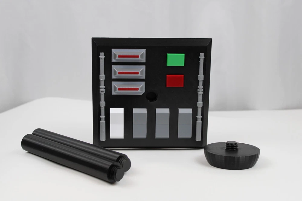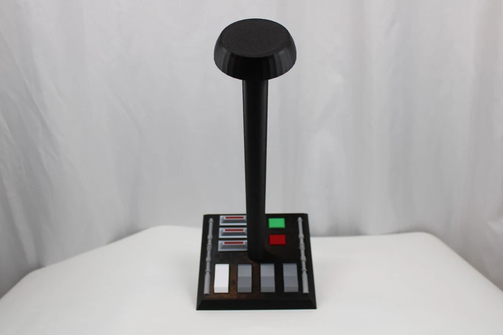Display your helmets from the Galaxy Far, Far Away! Thank you for your interest in one of our Star Wars inspired helmet stands. Each stand comes packaged as a kit and are made to order. There is some assembly and gluing required. Super glue or an equivalent is needed for a permanent bond. Please see the individual pictures for a look at the unassembled kits. This kit sits 15.5 inches tall. The base is 6.75"x6.5". Our 3D-printed kits are made using quality PLA+ for extra durability. Each kit includes the following: 1 x themed base 2 x poles 1 x helmet resting cap Helmet is not included