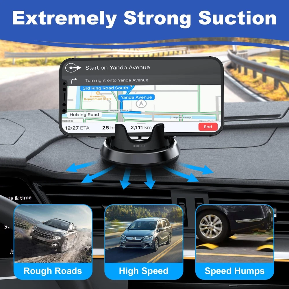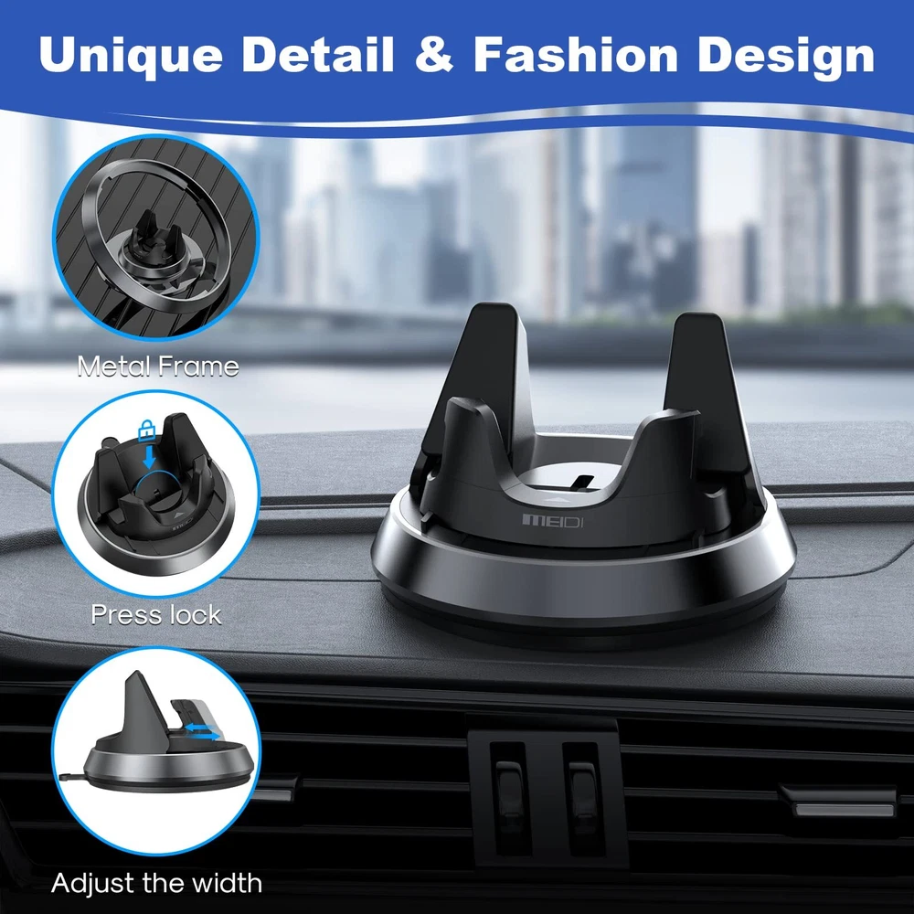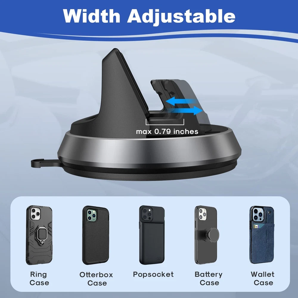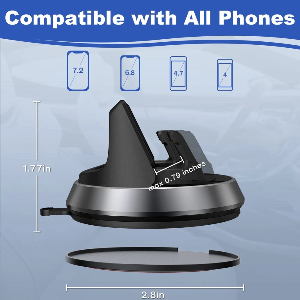 Top Stability - Consist of advanced silicone and a strong adhesive rubber base with suction cup, this dashboard phone holder will grip firmly on your car dashboard and protect your phone safety while driving. Washable & Reusable - The car phone holder mount can be removed from the dashboard without leaving any traces. It is designed to be washable and reusable. The silicone bottom will become sticky as new after flush. Case Friendly - With the thickness adjustable design, the car dash phone holder is suitable for almost all phones or GPS devices within 0.79 inches. Easy to install. Just peel off the adhesive film and stick it directly on the dashboard. Perfect Driving Angle - Based on the ergonomic tilt design and the 360° rotatable base, the phone mount for car provides a perfect driving angle without blocking the driver's sight. Multiple Usages - This dashboard phone cradle can not only be used in the car but also as an ideal desk phone stand when watching videos at home, laying the phone in the office, or exercise at the gym.