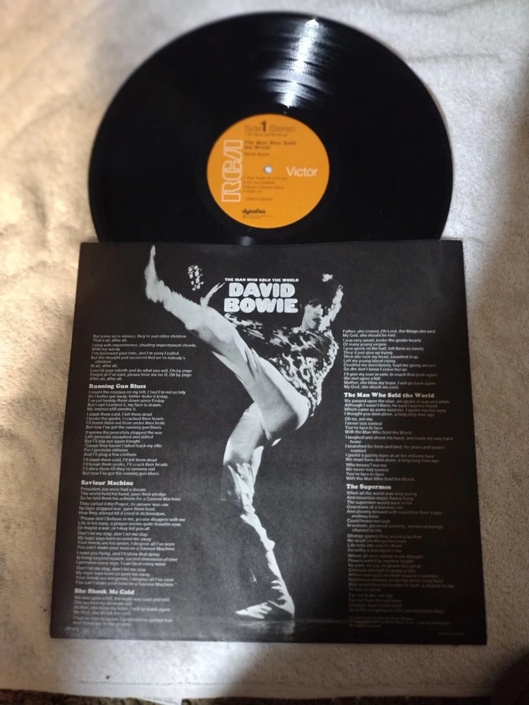 This is a rare promotional album by David Bowie, titled "The Man Who Sold The World." It features 33 RPM speed and a cardboard sleeve case type. The vinyl material is black and white in color, with a record grading of Very Good Plus (VG+) and a sleeve grading of Very Good Plus (VG+). The album was released in 1972 by RCA Victor, and is a must-have for any fan of folk rock, glam, and hard rock genres. The LP type is a 12" record, and the inlay and sleeve conditions are very good plus. This album also includes a poster and lyrics, making it a unique and valuable addition to any music collection.