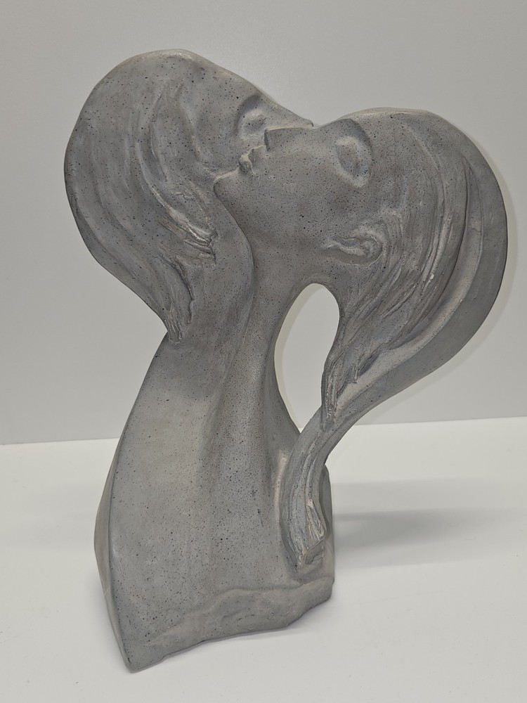 The David Fisher Austin Productions Vintage 1980 'Faces of Love' Stamped Sculpture is a unique and handmade piece of contemporary art created by artist David Fisher. This medium-sized statue, measuring 11 inches in length and 14 inches in height, is crafted from plaster and depicts the theme of love in an abstract and modernist style. Signed by the artist, this limited edition sculpture was produced in the 1980s in North Carolina, USA, making it a special addition to any art collection or as a statement piece for any room.
