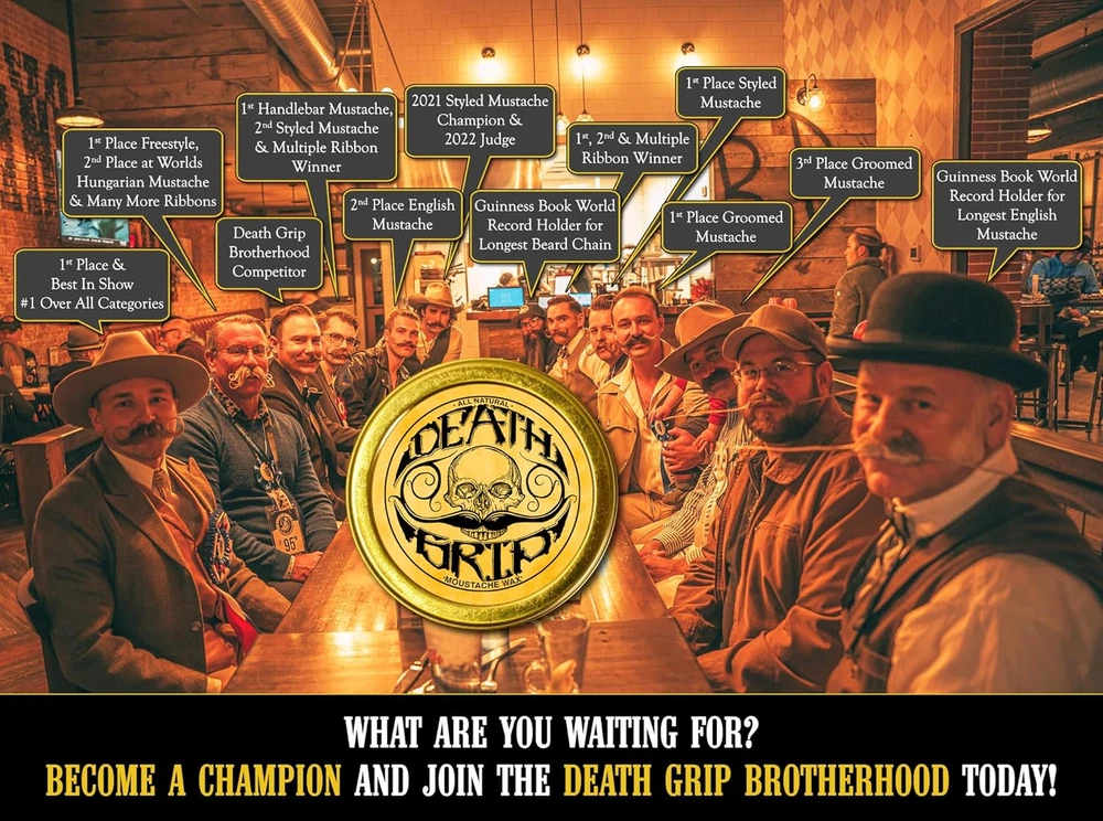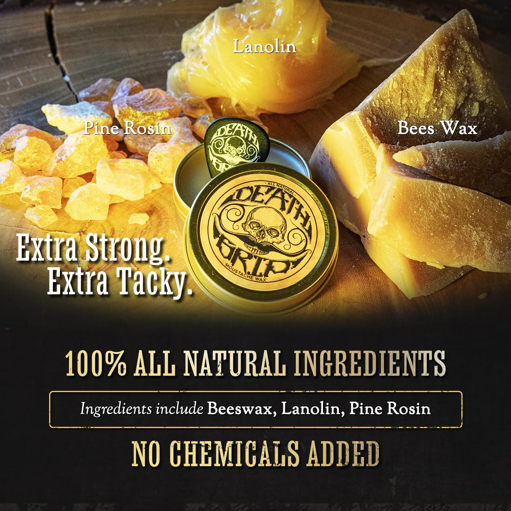 Store New Arrivals Add to Favorite View Feedback Contact Mustache Wax Death Grip Extra Strong Hold Moustache Wax Description Item model number MW-002 Manufacturer Death Grip Style Death Grip Extra Strong Hold Is Discontinued By Manufacturer No Product Dimensions 2.13 x 2.13 x 0.5 inches; 1.45 ounces Product Benefits function(f) {var _np=(window.P._namespace("DetailPageProductOverviewTemplatesJava"));if(_np.guardFatal){_np.guardFatal(f)(_np);}else{f(_np);}}(function(P) { P.when('A').execute(function(A){ A.on('a:truncate:po-attribute-truncate-0:updated', function(data) { var isTruncated = !data.truncateInstance.getIfTextFits(); var seeMoreElement = document.getElementById('po-attribute-see-more-id-0'); if(seeMoreElement) { seeMoreElement.style.display = isTruncated ? '' : 'none'; } }) }); })); Provides extra strong hold for up to 8+ hours, lasts up to 4 months, and contains all-natural cruelty-free ingredients. See more Material Type Free Dye Free, Paraffin Free, Paraben Free Liquid Volume 1 Fluid Ounces Scent Unscented Hair Type All Size 1 Ounce (Pack of 1) Caution For Serious Moustaches Only - Hairdryer or heat with a little bit of practice is recommended Extra Strong Hold - Holds those unruly stash whiskers in place for 8 plus hours even in hot weather Lasts A Long Time - 1oz metal tin mustache wax can last up to 4 months of daily usage; non scented Handcrafted Made In the USA - All natural cruelty free ingredients competition grade moustache wax Death Grip Mustache Wax Promise - If you are not happy for any reason we will refund your money Product Description Origin Story of Death Grip Mustache Wax The video showcases the product in use. The video guides you through product setup. The video compares multiple products. The video shows the product being unpacked. hero-video Merchant Video The video showcases the product in use. The video guides you through product setup. The video compares multiple products. The video shows the product being unpacked. hero-video Merchant Video Death Grip Mustache Wax Death Grip Mustache Wax is ideal for all your grooming needs. A little goes a long way, so you do not need to waste product by using a huge amount. Simply spread wax evenly without “pilling up”. For best results, use a hairdryer or heat up to make the wax more malleable to attain the perfect curl & shape you desire. Product Comparison Add to Cart Add to Cart Add to Cart Add to Cart Customer Reviews 4.4 out of 5 stars 10,448 4.4 out of 5 stars 10,448 4.4 out of 5 stars 10,448 4.4 out of 5 stars 10,448 Price $17.98 $ 17 . 98 $17.98 $ 17 . 98 $17.98 $ 17 . 98 $17.98 $ 17 . 98 Heat Source Required Yes Yes No No Tacky? Yes Slightly No Slightly Hold Strength Extra Strong. Extra Tacky. Extra Strong. Extra Firm. Medium. Easy Application. Strong. Easy Application. Intended Use / Style Competition Grade / Handlebar Competition Grade English Dali Training Styling Natural Look Styling / Training What's Included? 1oz Mustache Wax with Pick 1oz Mustache Wax with Pick 1oz Mustache Wax with Pick 1oz Mustache Wax with Pick Unscented ✔ ✔ ✔ ✔ How To Clean? Night Fury Wax Remover & Soap Night Fury Wax Remover & Soap Soap & Water Soap & Water ABOUT US We offer the best prices around on high quality products. Our E-store includes media such as books, movies, music and games while offering electronics, toys, sporting apparel, clothing, tools, general home, garden items and more. SHIPPING We are always working hard to ensure your package arrives as soon as possible. Please understand that some factors like weather, high postal traffic, and the performance of shipping companies are outside of our control. We offer free shipping to the lower 48 states and ship within 2 business days of payment, usually sooner. We do not accept P.O. Boxes. Please provide a physical address. RETURNS We offer a 30-Day Return Policy on items which you are not completely satisfied with. You have the option for a full-refund or an exchange of the item. No returns are available on items shipped outside of the USA. PAYMENT We accept PayPal. CONTACT US This page content is yet to come Please ad us to your favorite seller and visit again later Thank You CUSTOMER SATISFACTION We try our very best to make sure every customer is completely satisfied. If there's a problem, message us! We're happy to help.