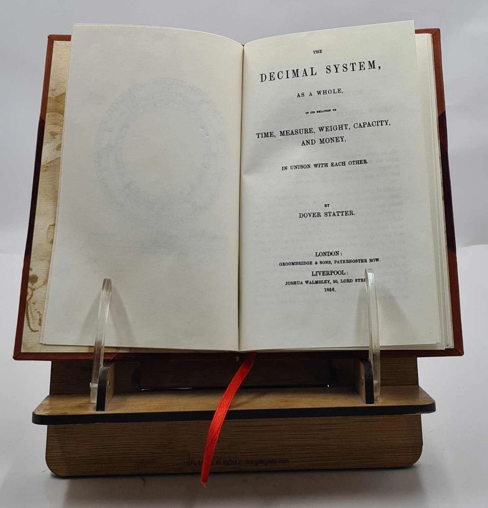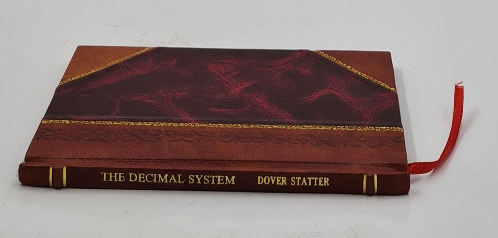 About the Book: Complete Title: The decimal system as a whole, in its relation to time, measure, weight, capacity, and money 1856 [Leather Bound] Author: Dover Statter Edition: Reprinted by Gyan Books in 2019 with the help of original edition published long back [1856] . Language: English No. Of Pages: 46 Binding: HALF LEATHER binding features a leather spine and corners with the remaining cover in Raxine or Marble Paper. CHOOSE ANY LEATHER COLOR OF YOUR CHOICE WITHOUT ANY EXTRA CHARGES JUST CLICK ON IMAGES FOR OPTIONAL COLORS AND INFORM US YOUR CHOICE THROUGH MAIL WITH COLOR CODE. Customization Options Available Upon Request We provide 'Extra customization*' on request with additional charges. Please note that customization charges are applied in addition to the listed item (Book) price. Customization Extra Charges Sample Image FULL LEATHER BOUND WITH GILDED EDGES (ANY COLOR) USD 35 MULTI-COLOR LABELS (Spine) USD 12 PERSONALIZED IMAGE EMBOSSING ON THE FRONT COVER USD 40 FOLIO EDITION (12x18.5 inches) BIGGER SIZE Six times of the given price Points to note before booking order: SPECIAL DISCOUNT FOR BULK ORDERS PLEASE CONTACT US. UNIQUE LEATHER-BOUND Edition on Spine and Corners along with Golden Leaf Printing on Round Spine. This book is: Printed in Black & White (If a color edition is available you may request it by mail for a nominal charge.) Sewed binding for longer life Printed on high quality Natural Shade Acid Free Paper Professionally processed without changing its content Genuine Leather is being used for Binding Handcrafted Golden Leaf Printing. Round Spine Handmade Marble paper use for end paper Raise bands Bookmark Ribbon As these are old books each page is processed manually to make them readable. But in case some pages are blur or missing or have black spots the same are re-printed as it is to keep the authenticity of the book. In case of multi volume sets please note that the above listing is for a single volume only. (To order multiple volumes please contact us separately). We request you to understand that these leather-bound books are work of art and hence require time to go through different process to be the masterpieces that they are. We usually take 20 business days as handling time to dispatch shipment. We consider special request for a special occasion. Craftsman based in India prepared this book and shipped from different stock locations around the Globe. PRODUCT DISCLAIMER: Please be aware that because leather is a natural material slight discoloration or change in texture may be visible. ABOUT US GYAN BOOKS INTRODUCING A REMARKABLE LEATHER-BOUND EDITION, METICULOUSLY CRAFTED BY THE ESTEEMED INSTITUTION: RARE BIBLIO A UNIQUE LEATHER-BOUND BOOK FOR ELITE READERS/COLLECTORS OF OLD RARE AND BESTSELLING BOOKS. An ORIGINAL LEATHER is being used for Binding this Book on SPINE AND CORNERS along with GOLDEN LEAF PRINTING {Half Leather}. We deal into reprinting of the masterpieces crafted by authors around the world. We are proud to say that we have a collection of over 25 million books and our collection includes books that are as old as 200 years and hence are considered as RARE BOOKS. We are pioneer in this field having experience of 40 years. We also undertake printing and Leather Binding jobs of other books. Thesis printing and Leather Binding is one of our important services. Many publishers and authors approach us for their books to bind in our unique leather binding format for their special customers. Our craftsmen are active in this job since generations. Restoration of old books is our expertise. We are known by our Customization options. We have many leather color options in our bucket. The whole process is done manually so that it gives you the same feeling of old book.