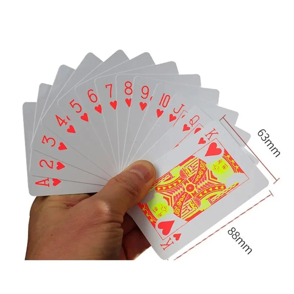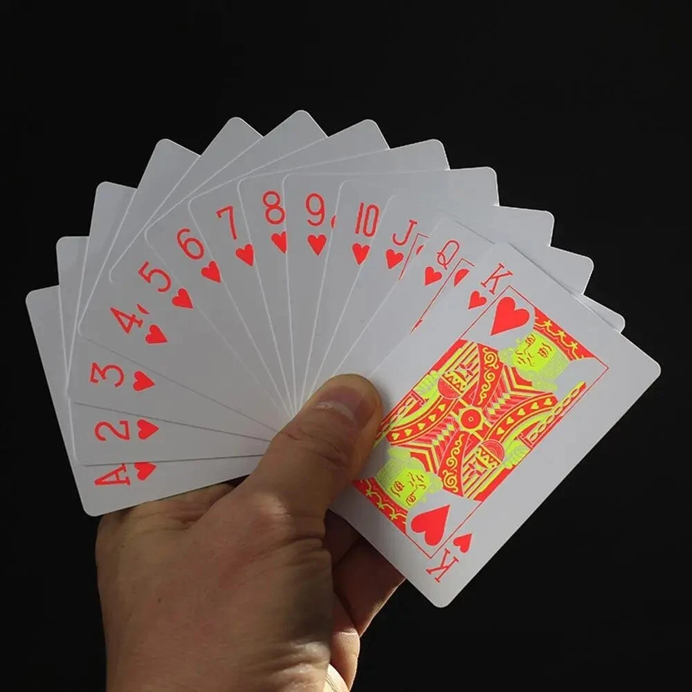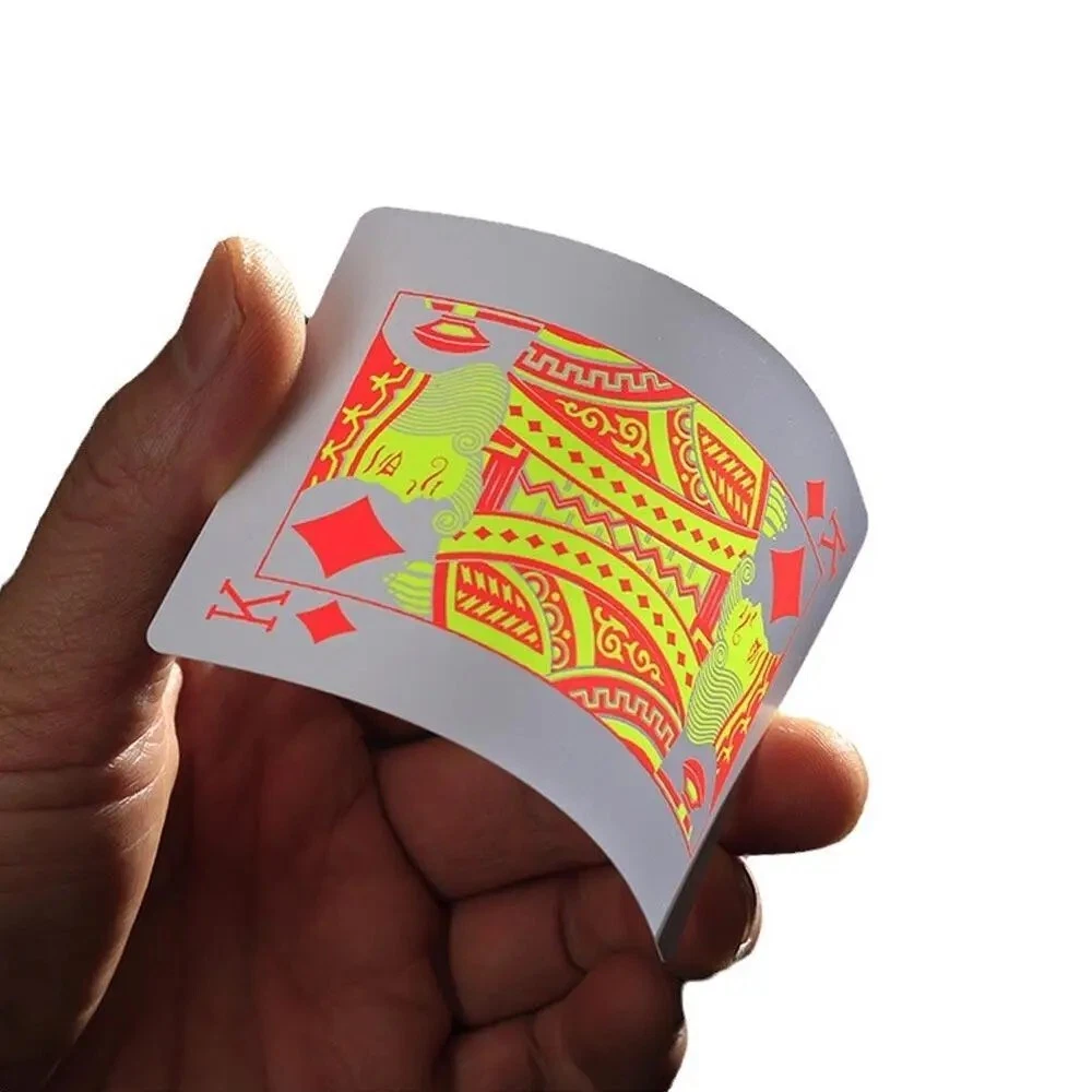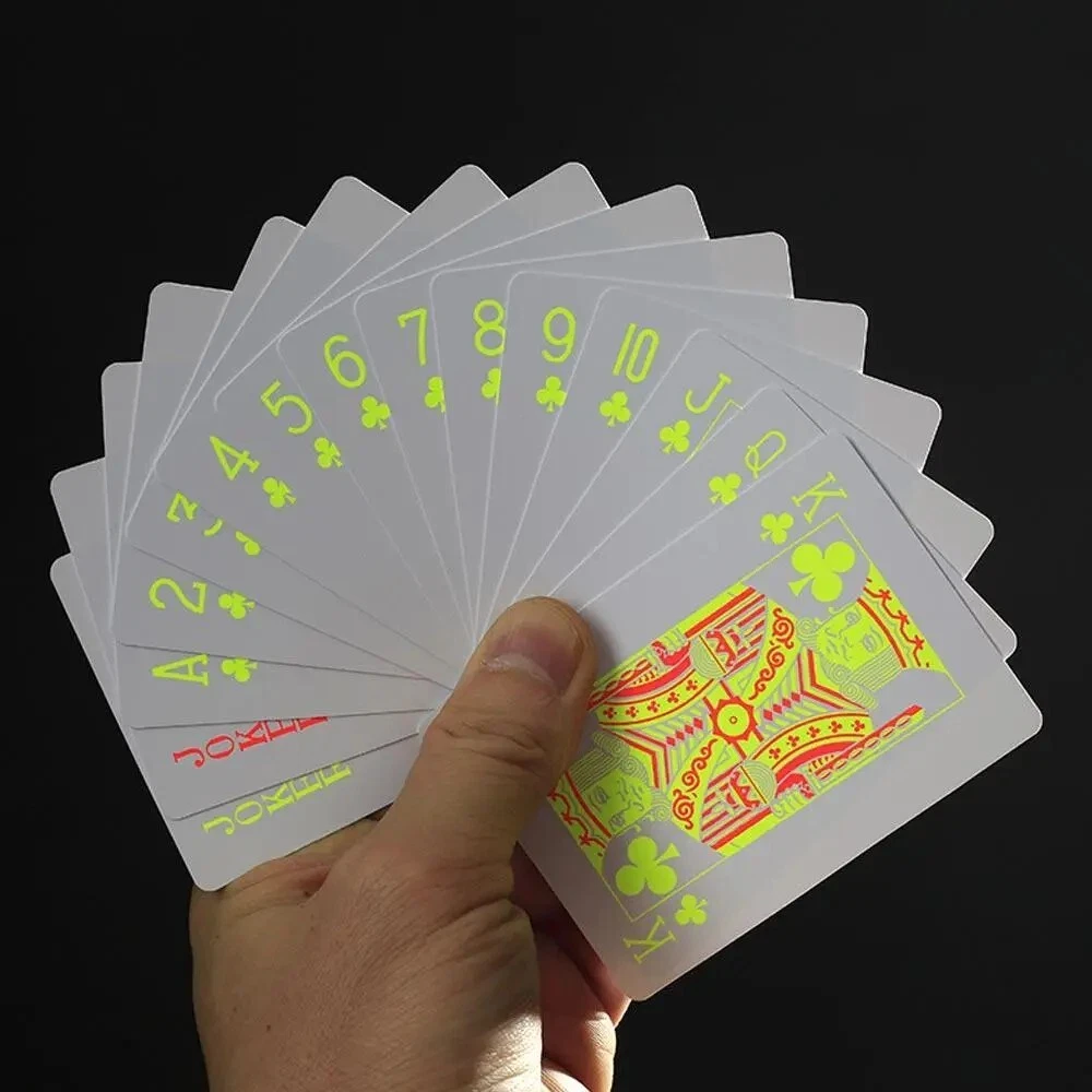 This deck of playing cards is perfect for those who love to play poker. The cards are made of durable plastic and are waterproof, ensuring that you can enjoy your game without worrying about spills or damage. Additionally, the cards glow under ultraviolet light, adding a fun and unique touch to your gameplay. The deck is manufactured in China and is a great addition to any collection of playing cards or collectibles. Whether you're an avid poker player or just looking for a fun way to spend an evening with friends, this deck of cards is sure to impress.