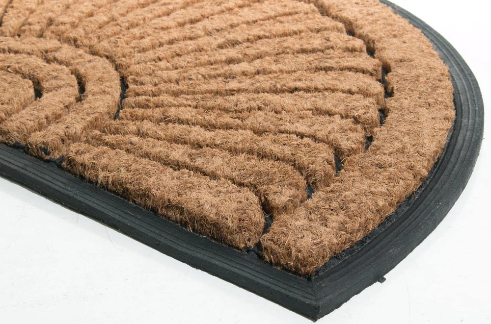 Welcome your guests with this attractive rubber back coir doormat from Decor. Constructed of 100-percent brush coir and molded with vulcanized rubber in a half-round sunrise design. Coir is the natural fibre extracted from the husk of coconuts and is relatively waterproof, has superior scrubbing power and is resistant to the elements. Coir combined with rubber reveals a doormat that is not only stylish and elegant but will also stay in place and not skid. Item #705RBCM-L 100-percent brush coir Vulcanized rubber prevents skidding Molded into a variety of attractive designs Ideal for heavy-use traffic areas Measures 24-inch by 36-inch