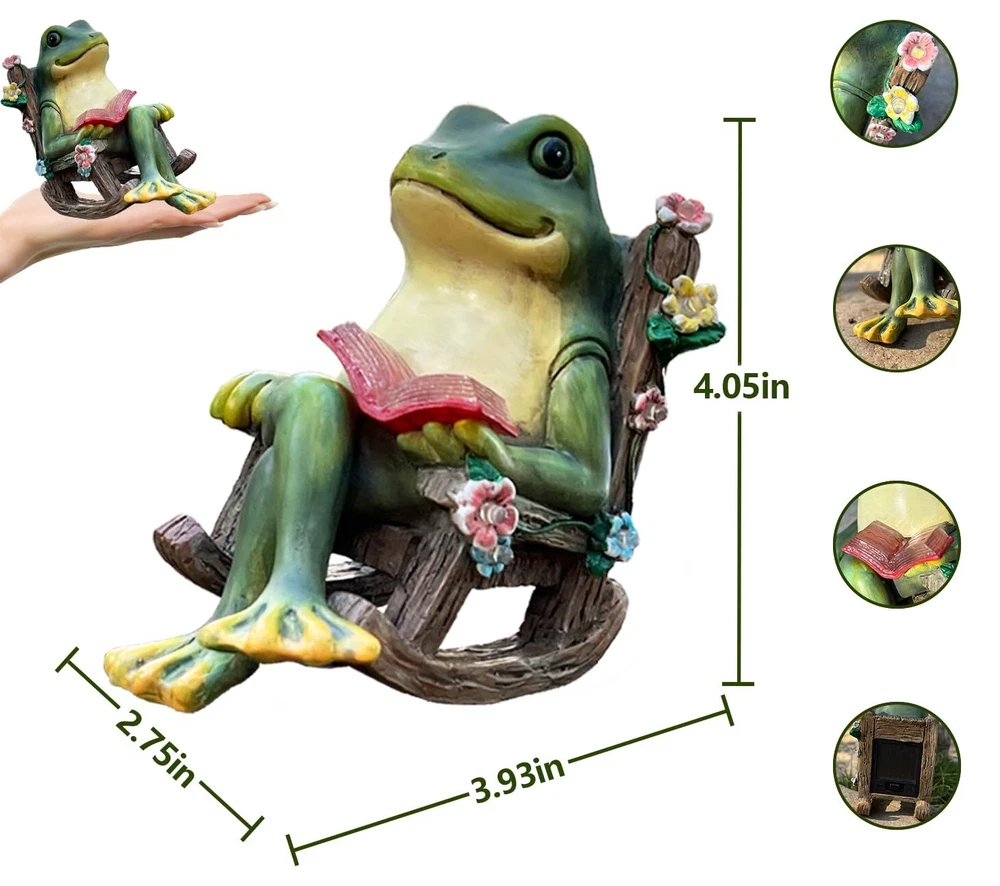 Solar Garden Statues Miniature Frog Figurine Christmas Decor with Succulents and 7 LED Lights Outdoor for Patio Yard Balcony Lawn - Unique Housewarming Birthday Gifts for Women Mom Family Friends Solar Garden Statues Miniature Frog Figurine Christmas Decor with Succulents and 7 LED Lights Outdoor for Patio Yard Balcony Lawn - Unique Housewarming Birthday Gifts for Women Mom Family Friends Free Shipping 24/7 Customer Service Premium Quality 【Easy to Operate】- This adorable solar frog garden decor can be fully charged in 6-8 hours during the daytime and automatically lights up at night for 8-10 hours, which is eco-friendly and energy efficient. For the first use, please remove the protective film of the solar panel, then keep the light switch in the “on ”state and make sure it is exposed to the sun. ( Light only can be charged and used when the switch turns "ON" .) 【Weather Resistant】- Crafted from IP67 waterproof resin materials, our solar powered frog light is fade resistant, light weight and durable, making the solar frog figurine suitable for both indoors and outdoors to withstand rain, hot sun and wind but without rusting, so that you can enjoy the captivating glow of the interesting frog lamp in bad weather conditions. 【Exquisite Design】- An attractive frog in a relaxed posture sits on a rocking chair decorated with colorful succulents, holding a shining red book to welcome the guests. The lovely reading frog with a friendly smile is eye-catching no matter where you place it. A hind leg touches the ground for stability of the frog sculpture. 7 soft warm yellow LED lights make the frog glow in dark environment, creating a cozy, fairy, romantic and serene atmosphere to your space. 【Awesome Decorative Gifts】- This super cute frog statue is a nice addition to your garden, patio, yard, flower bed, plant stand or camping.The frog represents wisdom, good luck and prosperity, also a perfect gift for your parents, daughters, grandparents, kids, family and friends on mother’s day, father’s day, birthday, Christmas, Thanksgiving, housewarming or any celebration to express your appreciation and best wishes! Especially for children who like little frogs! 【Thoughtful Service】- Notice: Measuring 3.93*2.75*4.05 inches, our outdoor decor frog figurines are not large-sized. Please make sure you have checked the dimensions before purchasing. We are committed to offering you well made solar lights and attach great important to your shopping experience. If you have any issue about our frog statue, just contact us, we will try our best to help you resolve the problem. Shipping Information We offer FREE shipping on all orders! We ship within three business days of payment, usually sooner. We use a selection of shipping services such as UPS, FedEx, USPS, etc. We only ship to the lower 48 states, no APO/FPO addresses or PO Boxes allowed. Return Policy You can return a product for up to 30 days from the date you purchased it. Any product you return must be in the same condition you received it and in the original packaging. Please keep the receipt. Feedback Customer satisfaction is our top priority. If you have any problem with your order, contact us immediately. We respond to all inquiries within 24 hours and will do our utmost to ensure you are fully satisfied with your shopping experience. Contact Us If you have any queries, please contact us via eBay. Our dedicated customer support team prioritizes your satisfaction and guarantees a response within 24 hours on weekdays. Discover Dobby's Deals! Thank you for choosing Dobby for your shopping needs. Explore more premium items in Dobby's Store today!