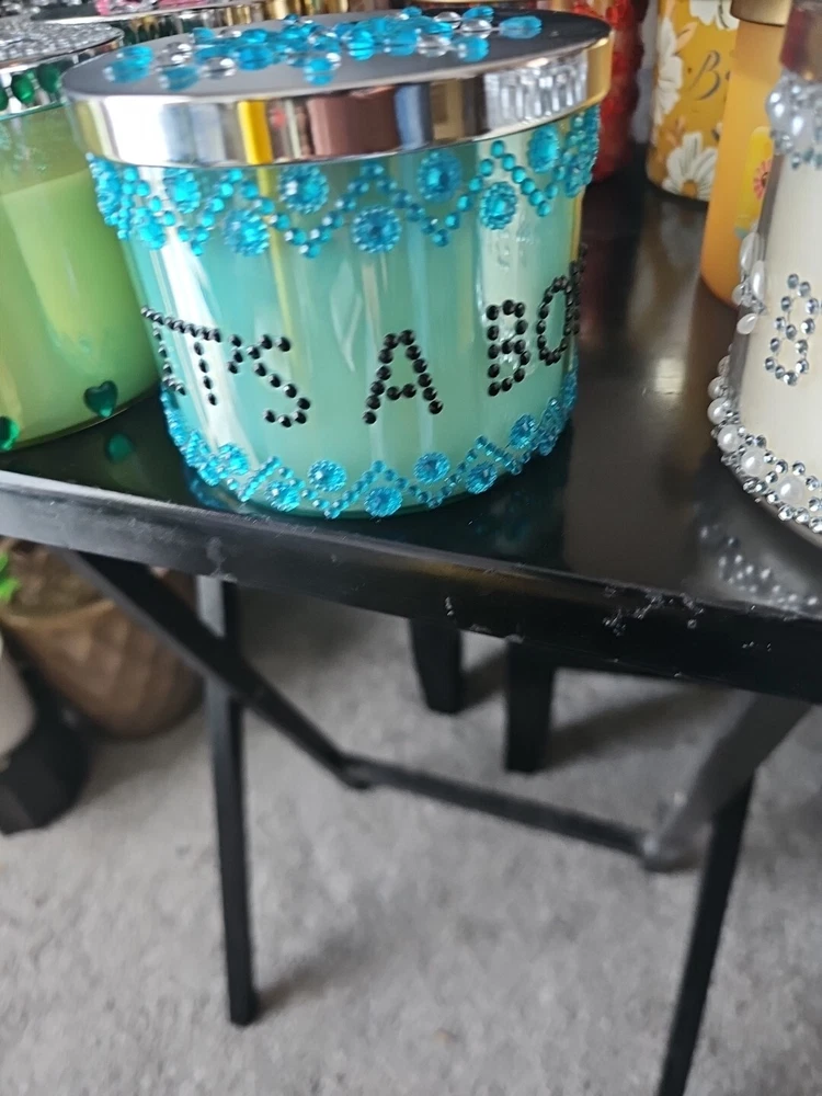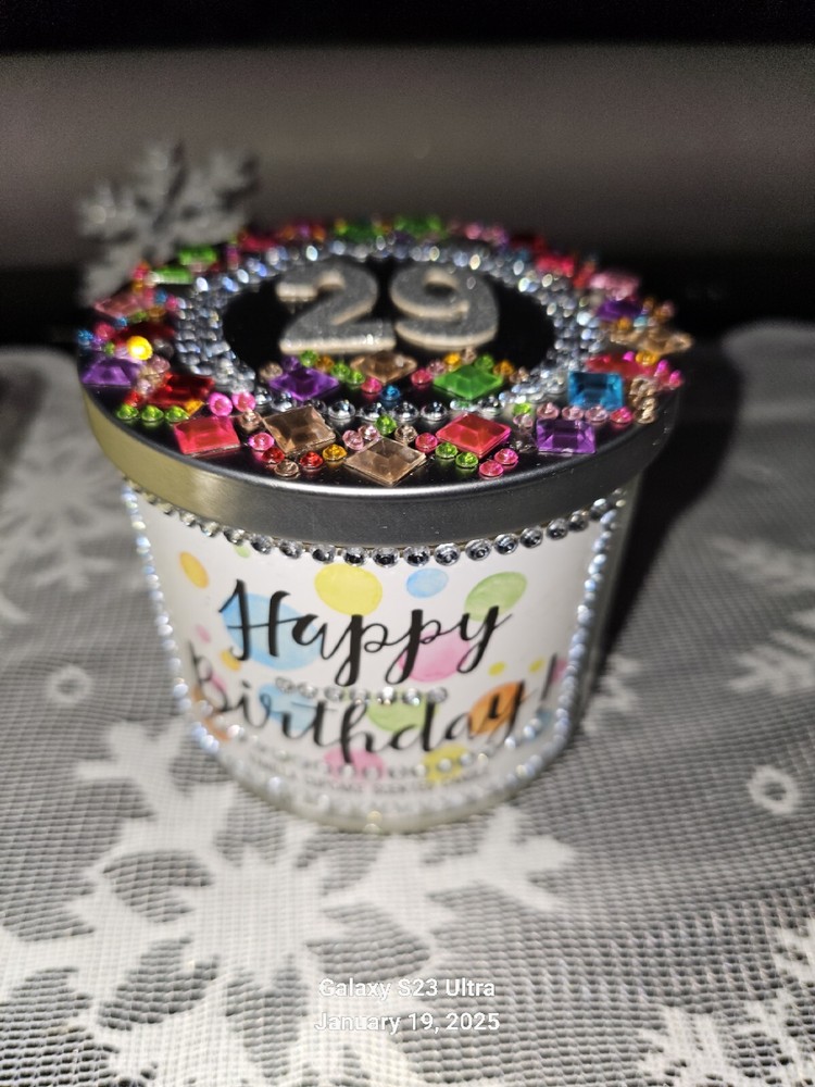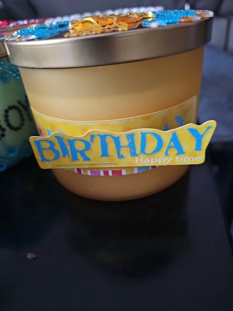 Material: Soy Wax Size: Medium Color: Multicolor Power Source: Flame Number in Pack: 1 Theme: Romantic, Special Occasions, Words & Phrases, Love & Hearts, Holiday Features: Scented Country/Region of Manufacture: United States Scent: Assorted/Mixed Item Width: 6 in Handmade: Yes Burning Time: More Than 5 hrs Type: Scented Candle Personalize: Yes Brand: Bath & Body Works Style: Traditional Customized: Yes Item Weight: 15 oz Shape: Round Room: Indoor