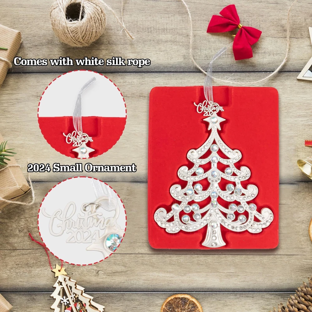 Eye-Catching Crystals for Added Sparkle: Unlike traditional ornaments, this 2024 metal christmas ornaments for tree features high-quality crystals, creating an enchanting, sparkling effect on your Christmas tree. The ornament reflects light beautifully, making it the perfect festive addition to any home, office, or holiday party décor, adding a luxurious touch to your seasonal decorations. Timeless Design for Christmas 2024: This 5" metal Christmas tree ornament combines traditional holiday charm with a contemporary twist, featuring iridescent beads and a beautifully engraved "Christmas 2024" message. The timeless design makes it a standout piece that seamlessly blends with any holiday décor, while its subtle glow adds warmth and magic to your tree. Lustrous Shine with Iridescent Beads: Decorated with small iridescent beads, this 2024 Christmas tree ornament decoration captures the festive spirit with a soft, luminous glow. These beads add an extra layer of sparkle, creating a mesmerizing effect when paired with the shining crystals. It’s perfect for those who want their Christmas tree to radiate sophistication and joy throughout the holiday season. Memorable Keepsake for Special Occasions: This xmas ornaments 2024 isn’t just for Christmas trees—it’s a meaningful keepsake that commemorates Christmas 2024. Whether it’s hung on a wreath, used as a unique centerpiece, or even displayed in a shadow box after the holidays, this ornament serves as a beautiful reminder of shared moments with loved ones, making it a lasting memento for years to come. Radiant Holiday Elegance: This 5" metal Christmas ornament is designed to bring an extra sparkle to your holiday décor, featuring shimmering crystals that adorn the entire Christmas tree shape. With its dazzling rhinestone style, this ornament catches the light from every angle, creating a glowing and festive ambiance perfect for celebrating Christmas 2024 Premium Quality Craftsmanship: Made from high-quality alloy material and enhanced with premium nickel plating technology, this metal Christmas tree ornament is built to last. The fine detailing and superior materials give it a polished, elegant finish, making it a standout piece that retains its brilliance year after year, while ensuring durability throughout the holiday season Memorable 2024 Keepsake: Engraved with "Christmas 2024," this glitter Christmas ornament for tree captures the special memories of this year’s holiday season. Its unique dated design makes it more than just a decorative item—it's a meaningful keepsake to remember and cherish the warmth and joy of Christmas 2024, making it perfect for your collection Versatile Use: The 2024 decorative xmas tree ornament comes with a sturdy white rope, allowing for easy hanging on Christmas trees, wreaths, mantels, doors, windows, walls, garlands, cabinets, or balconies. Its elegant design complements both modern and classic holiday themes, making it a versatile decoration that enhances any setting Perfect Holiday Gift: This beautifully crafted Christmas tree hanging ornament 2024 makes an ideal gift for family, friends, acquaintances, coworkers, or anyone who enjoys the magic of the season. With its sparkling design, high-quality craftsmanship, and meaningful 2024 engraving, it’s a thoughtful and elegant present that will be treasured for years to come, perfect for spreading holiday cheer