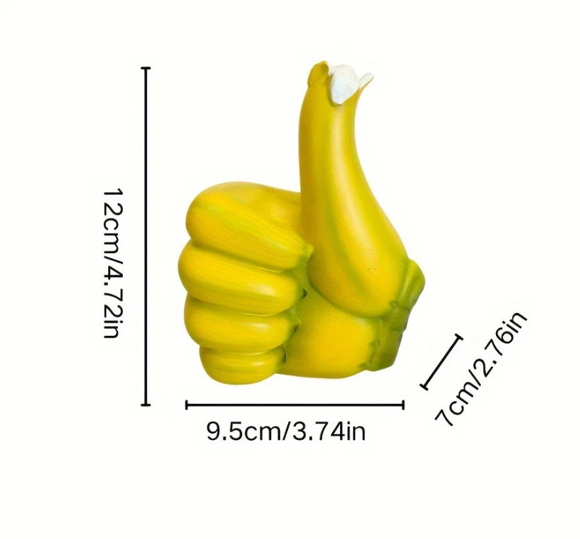 New Creative Banana Thumbs Up Hand Resin Crafts Decoration, Home Decor Living Room Study Wine Cabinet Material: Resin Category: Resin Crafts Color: Yellow, Green Suitable gift giving: Business gifts, promotional gifts, conference gifts, festival gifts, commendation and commemoration gifts Style: Modern and minimalist On Dec 30, 2024 at 01:49:12 PST, seller added the following information: