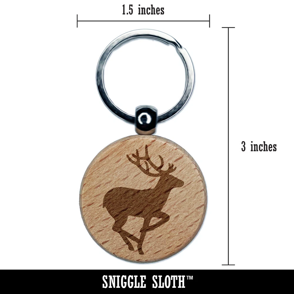Deer Buck in Profile Solid Engraved Wood Round Keychain Tag Charm