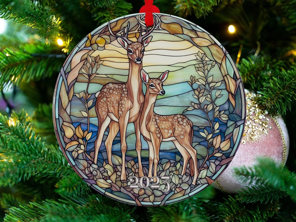 Deer Ornament Reindeer Ornament Christmas Decoration Holiday Gift Idea 2024 Heirloom Keepsake Round Ceramic Bauble Present Material: Ceramic Color: White Shapes: Circle, star, heart and oval Can be printed on both sides Imprint full-color artwork, photos, or logos Hole for hanging string and hanging string included Printed in the USA
