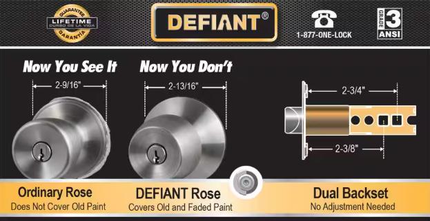 The Defiant Freedom Matte Black Single Cylinder Combo Pack is a classic keyed entry door lock set suitable for residential use. It features a matte black finish, ANSI Grade 3 security rating, and comes with a lock with a keyed lever. The hardware included is in black color and made of zinc material, with an assembled height of 7.70 inches and assembled dimension of 7.70 inches in height, 5.75 inches in width, and 6.20 inches in depth. The product weighs 2.68 pounds and is designed for exterior use.