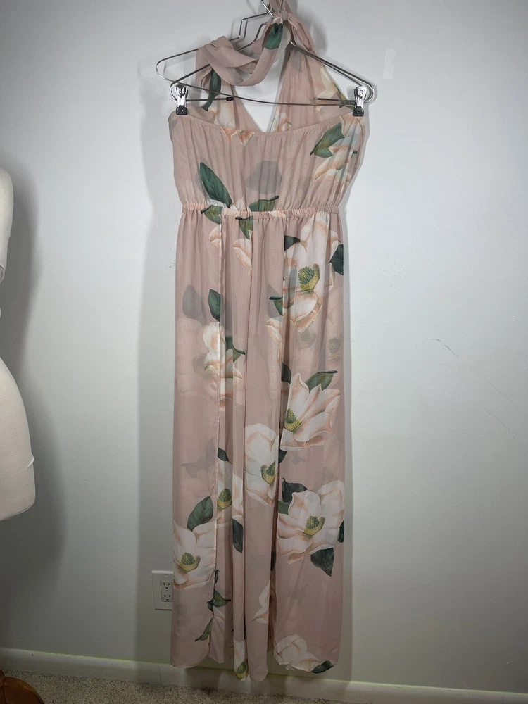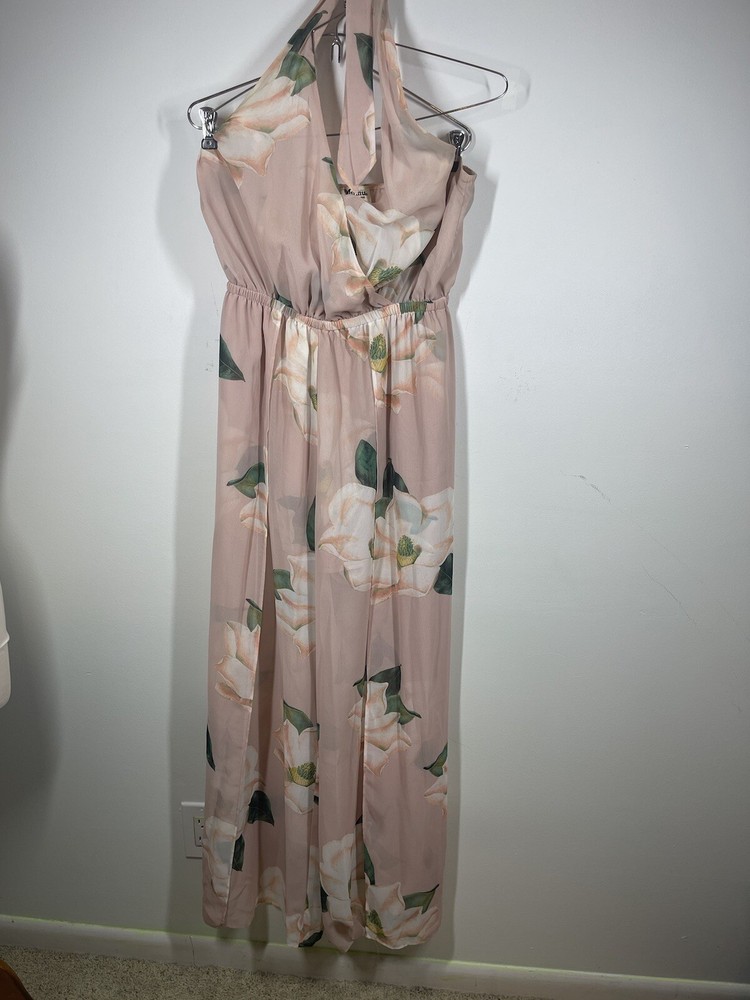 Band of Gypsies Peach Floral Jumpsuit Size Medium Boho Chic Style