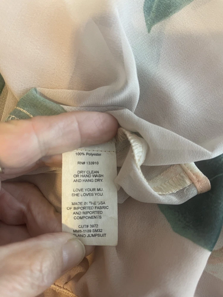 This jumpsuit is beautiful It’s sheer but has several layers so you are covered No flaws stains or odors Fast ship Bin 34