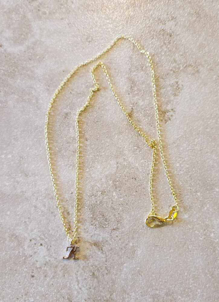 Add a touch of elegance to your outfit with this beautiful Dainty Initial k Letter Necklace. The necklace is crafted with care and features a unique design that will make you stand out from the crowd. The pendant is made of high-quality yellow gold plated metal, which gives it a luxurious and sophisticated look. This necklace is perfect for any occasion, whether it's a Christmas, anniversary, or birthday. The lobster closure ensures that the necklace stays securely in place, while the adjustable cable chain allows you to customize the fit to your liking. The necklace is nickel-free, which makes it ideal for those with sensitive skin. Get your hands on this exquisite piece of jewelry today and take your style game to the next level!