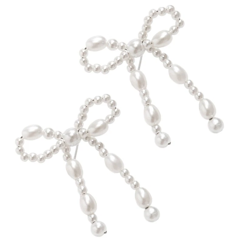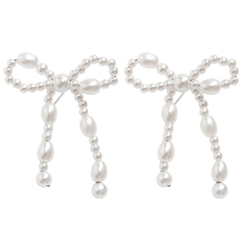 $ 13.2Elegant Sweet Bowknot Dangle Earrings with Long Tassels and Round Beads for Party Wear