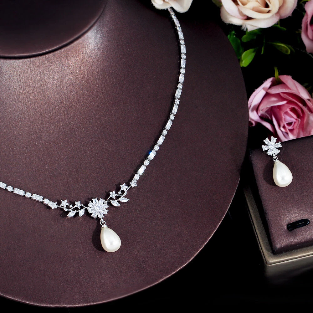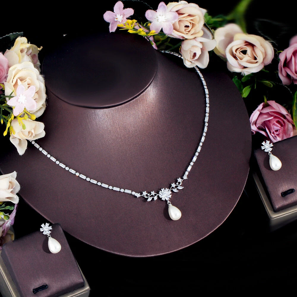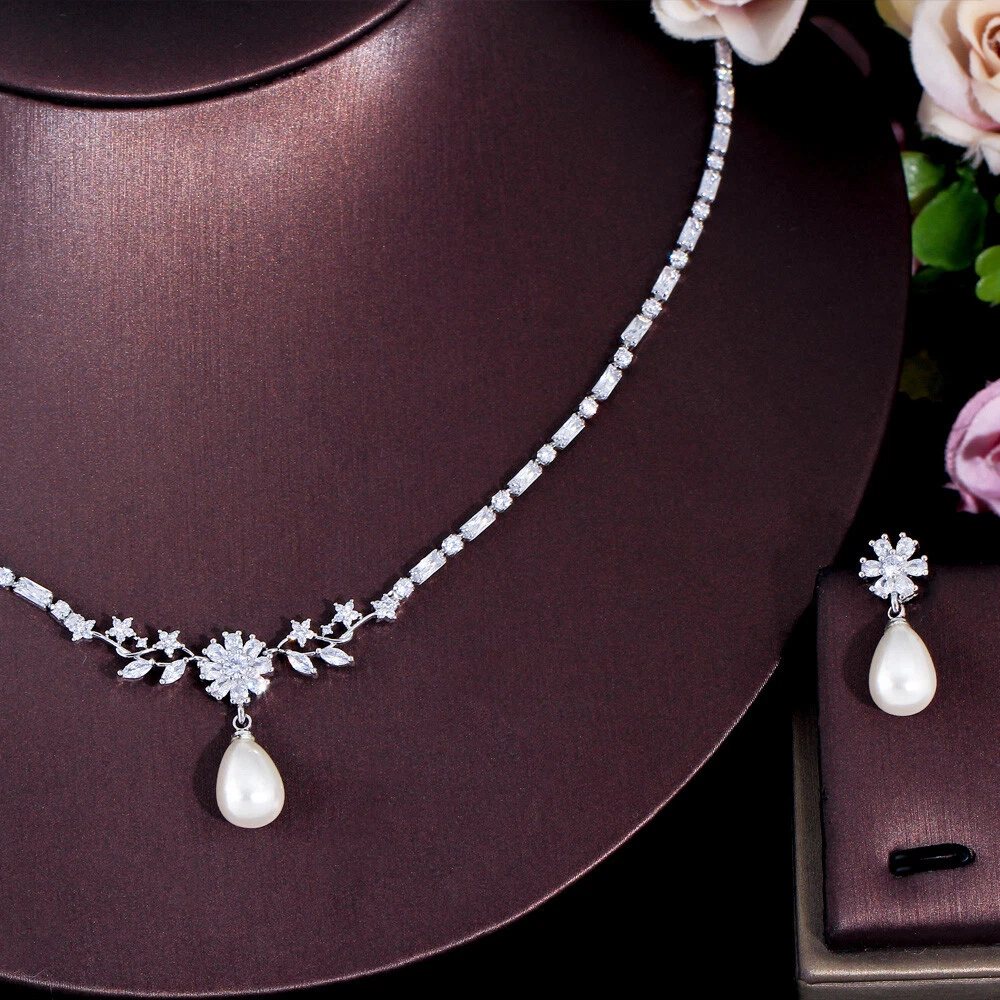 Delicate Silver Plated Pearl Drop CZ Zircon Flower Earrings Necklace Jewelry Set There’s an old saying that: Jewelry is woman’s best friend. And one appropriate luxury jewelry helps to spice up your charm and beauty. And here’s the reason why you choose us: ★ We adopts high-grade Cubic Zirconia, which displays pure and fascinating color; ★ All our items are Elaborate, Gold Plated (white gold plated/yellow gold plated/black gold plated), by which the texture is smooth and with fancy look, and will be appropriate for so many occasions; ★ Our items are with Exquisite Design, which shows your excellent taste, and could catch people’s attention easily. ★ Ideal gift for mother, wife, girlfriend, daughters, brides, bridesmaids, ect. Specification Type: Luxury Jewelry Set Stone Material: Cubic Zirconia Base Metal Material: Brass Metal Material: Silver Plated Pearl Type: White Simulated-pearl Shape: Flower Color: White Suitable Occasion: Daily, Holidays, Party, Engagement, Wedding, Anniversary, Valentine’s Day, Carnival, Performance, ect. Package Includes 1 Pair of CZ Drop Earrings 1 Piece of CZ Necklace Please note: *Please bear in mind that there might be 1~2cm difference due to manual measurement. *Our digital images are as accurate as possible. However, different monitors may cause colors to vary slightly. *We offer after-sale service, if there is any item problem, please feel free to contact us via eBay message first, your kind understanding is much appreciated. About Us Payment Shipping Returns Contact us About Us Topjewel33 is a newly-established online store which dedicates to provide excellent luxury jewelry products, such as earrings, rings, necklaces, bracelets, brooches, hair accessories, and high grade jewelry sets. We target worldwide market, and we strive for offering you unbeatable low price and satisfied customer service. Payment We accept PayPal payment only. Payment must be received within 7 days from the date of purchase. Shipping We do hope all our customers could receive the order asap, so normally, the order will be sent out within 2 working days. And as the delivery is handled by the third party, sorry that we could not guarantee which date you could receive the package. And sometimes the delivery might be a little bit delay, especially in high volume or holiday seasons. However, please don’t worry and feel free to contact us via eBay message, and we will do our best to help. And we sincerely apologize for any inconvenience may cause. Sometimes custom tax might be required, and we are afraid that it will be covered by the buyers, thank you for kind understanding. Returns We provide 30 days money back return policy. And if you have any problem with the item, please make sure the item is in the original package and feel free to contact us via eBay message first, thank you for kind understanding and cooperation. Contact us We offer customer service, if you have any problem with the item before/during/after the purchase, please feel free to contact us via eBay message, and we will get back to you asap. Thank you for your kind patience.
