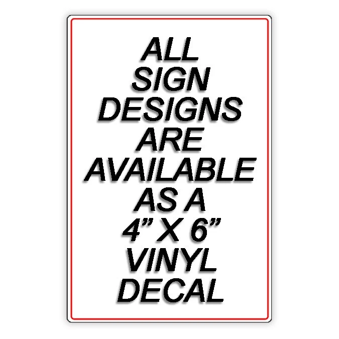 Available As An Aluminum Sign / Magnetic Sign / Vinyl Decal Aluminum Signs Are Available In Five Versions 5" x 7" / 8" x 12" / 12" x 18" Printed directly onto the metal sign Signs do not have stickers, decals, paint or vinyl lettering Won't fade, crack, peel, chip or rust. 5" x 7" (.025 thickness) Signs have square corners, two strips of mounting tape and no holes 8" x 12" (.025 thickness) Signs have rounded corners and are available in TWO OPTIONS AVAILABLE WITH 1/4" MOUNTING HOLES ALSO AVAILABLE WITHOUT MOUNTING HOLES BUT MOUNTING TAPE IS ATTACHED TO THE BACK OF THE SIGN 8" x 12" (.032 thickness) Signs have rounded corners and two 1/4" mounting holes 12" x 18" (.032 thickness) Signs have rounded corners and two 1/4" mounting holes Decals are 4" X 6" Vinyl decals do not have holes Printed with eco-solvent ink guaranteed to last 5 to 7 years Decals are shipped USPS First Class Mail with tracking CUSTOM DESIGN DECALS ALWAYS AVAILABLE Magnetic Signs Offer The Option Of Being Removable You can display the sign on your garage door or front door when you are expecting a delivery and then remove it when no delivery is expected Perfect if you'd prefer not to have a sign mounted permanently Magnetic signs are 7" x 10" or 5" x 7" and have no holes PLEASE CHECK TO MAKE SURE THAT MAGNETS STICK TO THE AREA THAT YOU PLAN TO USE THE MAGNETIC SIGN Some doors are aluminum and the signs may not stick PREMIUM QUALITY Made In The U.S.A. FAST SHIPPING 100% COMPLETE SATISFACTION GUARANTEED Your item will arrive quickly and in perfect condition. If there is anything about the transaction that doesn't meet your expectations, or if your item is damaged in shipping by the post office, Please send us a message and give us the opportunity to address your concern We promise to correct all problems to your complete satisfaction as quickly and easily as possible. EVERYTHING THAT WE SELL IS 100% MANUFACTURED IN THE UNITED STATES SINCE 1998 Thank you for supporting a family owned business Thank You for considering Custom Signs