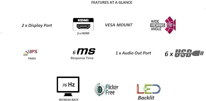 24-inch WUXGA Monitor (1920x1200) at 60Hz, 16:10 Aspect Ratio 1000:1 Contrast Ratio, 16.78 Million Colors, 6ms Response Time. Enhanced power management with PowerNap enables the Dell Display Manager to either dim the monitor to the minimum brightness level or put it into sleep mode when it is not in use Viewing Angel: 178/178, Widescreen Anti-Glare Display, Security Lock Slot HDMI, Mini DP, DP, Audio line out, USB 3.0 with USB 3.0 Upstream Port. Temperature Range Operating: 0° to 40°C (32° to 104°F) Height-Adjustable Stand (115mm) Title, Pivot, and Swivel with Built-in Cable Management Note: Please refer the user manuals below for better use. Compatibility- All Operating System