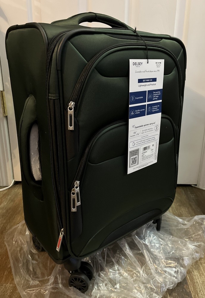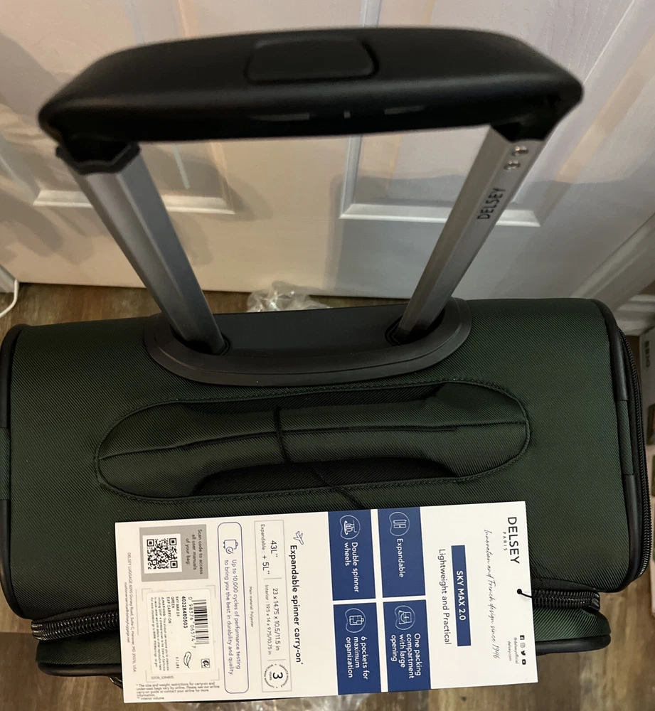 DELSEY PARIS Sky Max 2.0 Softside Expandable Luggage with Spinner Wheels, Green, Carry-on 21 Inch Interior: 19.5 x 14 x 9.75/10.75 in