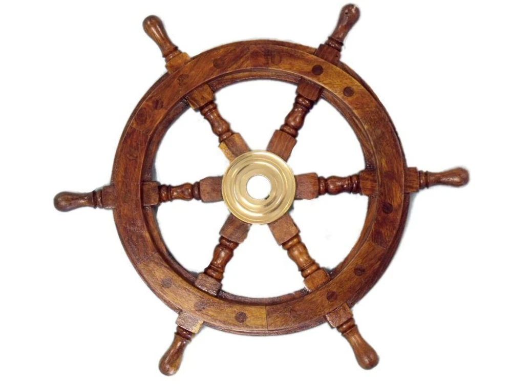 Deluxe Class Wood and Brass Decorative Ship Wheel 12" The Hampton Nautical Deluxe Class Wooden Ship's Wheel is by far the highest quality ship wheel available. Our Deluxe Class solid wood ship wheels have distinct and clearly visable wood grain. In addition, they are hand-sanded with additional coats of lacquer which give this decorative ship wheel a slight gloss which makes this a perfect nautical decor accent for your home, boat or office. Made from rare, high quality Shisham wood which is hard, strong and is highly regarded for its ability to resist the elements. The decorative wooden ship wheel has six spokes, each skillfully turned and assembled with plugged screw heads. The brass center hubs have uniform sizes holes and machined keyways. The overall dimensions of this ship steering wheel (including the spokes) are 12” Long x 12” High. The interior diameter of this boat steering wheel (excluding the spokes) is 6.5" Long x 6.5" High. NOTE: This wooden ship wheel is for decor purposes only and is not indented for use on a seafaring vessel. Dimensions: 12" x 2" x 12" NOTE: Wall mounting hardware not included. Key Features: Highest quality wooden ship wheel available Handcrafted from exotic solid Shisham wood with a brass center Distict and clearly visable wood grain Hand-sanded with extra coats of laquer for a slight gloss Weather resistant - indoor and outdoor use Heavy, sturdy and durable - weighs over 2 pounds Deluxe Class Wood and Brass Decorative Ship Wheel 12" The Hampton Nautical Deluxe Class Wooden Ship's Wheel is by far the highest quality ship wheel available. Our Deluxe Class solid wood ship wheels have distinct and clearly visable wood grain. In addition, they are hand-sanded with additional coats of lacquer which give this decorative ship wheel a slight gloss which makes this a perfect nautical decor accent for your home, boat or office. Made from rare, high quality Shisham wood which is hard, strong and is highly regarded for its ability to resist the elements. The decorative wooden ship wheel has six spokes, each skillfully turned and assembled with plugged screw heads. The brass center hubs have uniform sizes holes and machined keyways. The overall dimensions of this ship steering wheel (including the spokes) are 12” Long x 12” High. The interior diameter of this boat steering wheel (excluding the spokes) is 6.5" Long x 6.5" High. NOTE: This wooden ship wheel is for decor purposes only and is not indented for use on a seafaring vessel. Dimensions: 12" x 2" x 12" NOTE: Wall mounting hardware not included. Key Features: Highest quality wooden ship wheel available Handcrafted from exotic solid Shisham wood with a brass center Distict and clearly visable wood grain Hand-sanded with extra coats of laquer for a slight gloss Weather resistant - indoor and outdoor use Heavy, sturdy and durable - weighs over 2 pounds × Buy now and save! Shipping info Click the Shipping & Payments tab above the listing description for more info FREE Shipping Click the Shipping & Payments tab above the listing description for more info! Additional delivery notes PICK UP OPTION Sorry, our items are NOT available for pick-up. PAYMENT Immediate payment is required upon selecting "Buy It Now" or upon checking out through the cart. We accept payment via U.S. PayPal accounts and all Major Credit Cards, Debit Cards & Google Pay. We are legally required to collect sales tax in those states and localities where we maintain a physical presence (nexus). The applicable amount of sales tax charged to an order will be calculated based on the shipment destination's state and local sales tax laws. Thank you for shopping with us on eBay! Additional Information No additional information at this time Ask seller a question You might also like FL/AL Small Boat/Kayak: Perdido Bay to Bon Secour Bay-BSP322 Small Shark Identification Chart SK502 Large Fishes of the Gulf of Mexico and Florida Identification Chart-FG504 Large Texas Corpus Christi Bay Area-CC55 Large Contact To contact our Customer Service Team, simply click the button here and our Customer Service team will be happy to assist. Ask seller a question © BC Nautical Shipping & Payments Shipping is FREE for this item Payment Accepted Payment Methods Immediate payment is required upon selecting "Buy It Now" or upon checking out through the cart. We accept payment via U.S. PayPal accounts and all Major Credit Cards, Debit Cards & Google Pay. We are legally required to collect sales tax in those states and localities where we maintain a physical presence (nexus). The applicable amount of sales tax charged to an order will be calculated based on the shipment destination's state and local sales tax laws. Thank you for shopping with us on eBay! Returns Returns are accepted Items must be returned within 14 days of the auction ending Buyer will pay for return shipping. eBay integration by