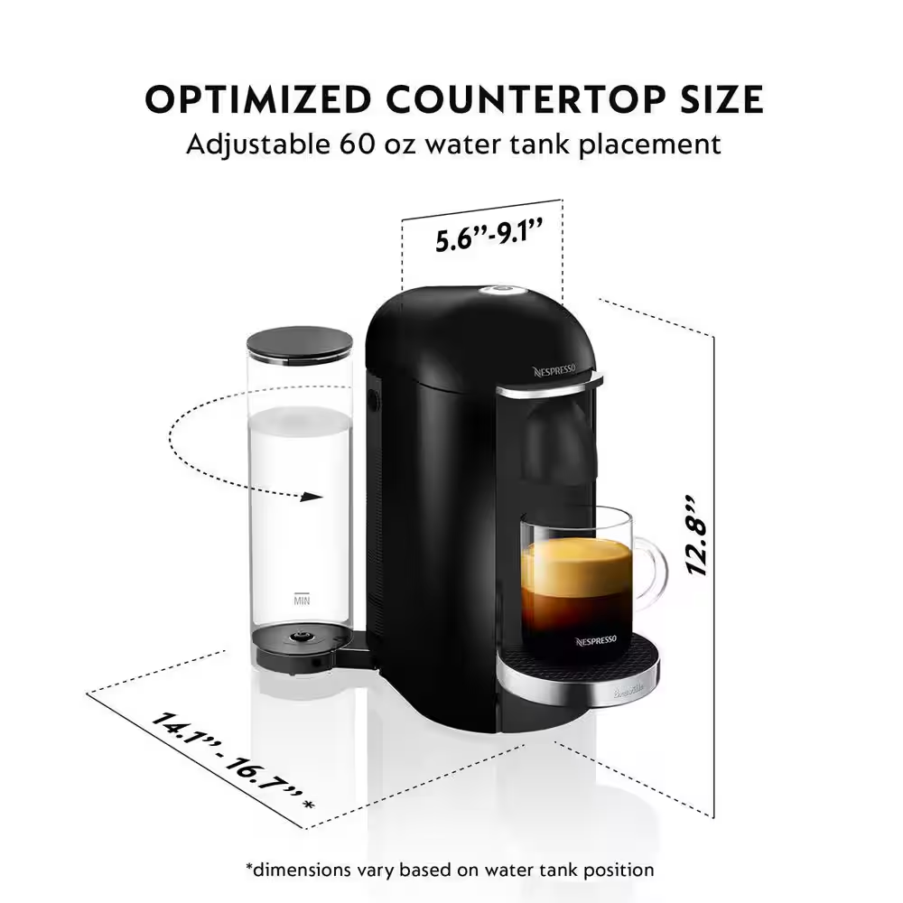 HOME Feedback Save Seller Newsletter Contact us Deluxe Single Serve Espresso Coffee Maker VertuoPlus Piano Black Description 16.7 inches x 5.6 inches x 12.8 inches. Weight: 0.0 grams Appliance Series Not Applicable Appliance Type Coffee Maker Brew Strength Normal Coffee Appliance Type Single Serve Coffee Filter Type Capsule Coffee Options Espresso Color/Finish Piano Black Color/Finish Family Black Commercial Use Residential Commercial/Residential Residential Features Automatic Shut-Off,Detachable Water Tank Material Plastic Number of Cups 1 Small Appliances Color Family Black Wattage (W) 1350 W Product Depth (in) 5.600 in Product Height (in) 12.800 in Product Width (in) 16.700 in Centrifusion technology recognizes each Grand Cru blend Providing flexibility and convenience, Nespresso's VertuoPlus Deluxe single-serve coffee and espresso system features a motorized brew head for easier capsule insertion and a flexible 60 oz. water tank that moves to conform to your counterspace. Offering freshly brewed coffee with crema as well as delicious, authentic espresso, VertuoPlus Deluxe conveniently makes 2 cup sizes, 8 fl. oz. coffee and 1.35 fl. oz. espresso, at the touch of a button. VertuoPlus Deluxe uses 2 different capsule sizes - a large capsule for coffee and a small 1 for espresso. Centrifusion, a patented extraction technology developed by Nespresso, recognizes each Grand Cru blend thanks to a barcode on the rim of the capsule. The brewing parameters are read and adjusted by the machine with no need for you to change the settings. Plus, a convenient tasting kit with 12 Nespresso Vertuo capsules is included to get you started. Payment PayPal is our preferred method of payment. If you do not have a PayPal account, all major credit cards are gladly accepted through PayPal as the payment processor. PayPal offers great buyer and seller protection. Your order will be processed pending receipt of cleared payment through PayPal. Sales tax may be charged depending on your location. Shipping We provide Free and Fast shipping. Most items are shipped within 3 business days of receiving cleared payment. We ship to the lower 48 contiguous United States only. We do not ship to P.O. boxes or APOs. We are always working hard to ensure your package arrives as soon as possible. Please understand that some factors like weather, high postal traffic, and the performance of shipping companies are outside of our control. (We ship the product from multiple warehouses). Returns We offer a 30-day return/exchange policy for most of our products. You can request a refund if you are dissatisfied for any reason with your product. (Restocking Fee May Apply). Only factory defects are accepted as a reason for a return. In the case of factory defects, if available, we will replace the product for you. When returning an item, it must be in all of the original packaging and include all of the original accessories or items that came with it. The item and package should be in original and perfect condition. All returns MUST be done within 30 days of the date of purchase. Please note that we cannot give refunds or replacements after the 30-day limit has expired. We are extremely fair, and in the rare event of something out of the ordinary happening with our products or shipping, we will gladly work with you to find a fair resolution. Feedback Feedback on eBay is a very important part of our Business as it is the feedback that we receive from our customer which shows any potential new customer that we are a trusted, friendly, efficient and proactive company. If for any reason you are not happy with your experience with salma-antique contact us and there is not issue large or small that we cannot try and resolve. We are all human and can make a mistake but it is how you fix that mistake that counts. Please give us that chance to sort it out before leaving a negative feedback. If you do not contact us about any issues you have we cannot resolve it. Please leave us positive feedback and all "5's" on the DSR, if you are happy with our service and product as this is what improves all Ebay sellers to provide the experience that all buyers want. Contact Us Click here to Contact Us