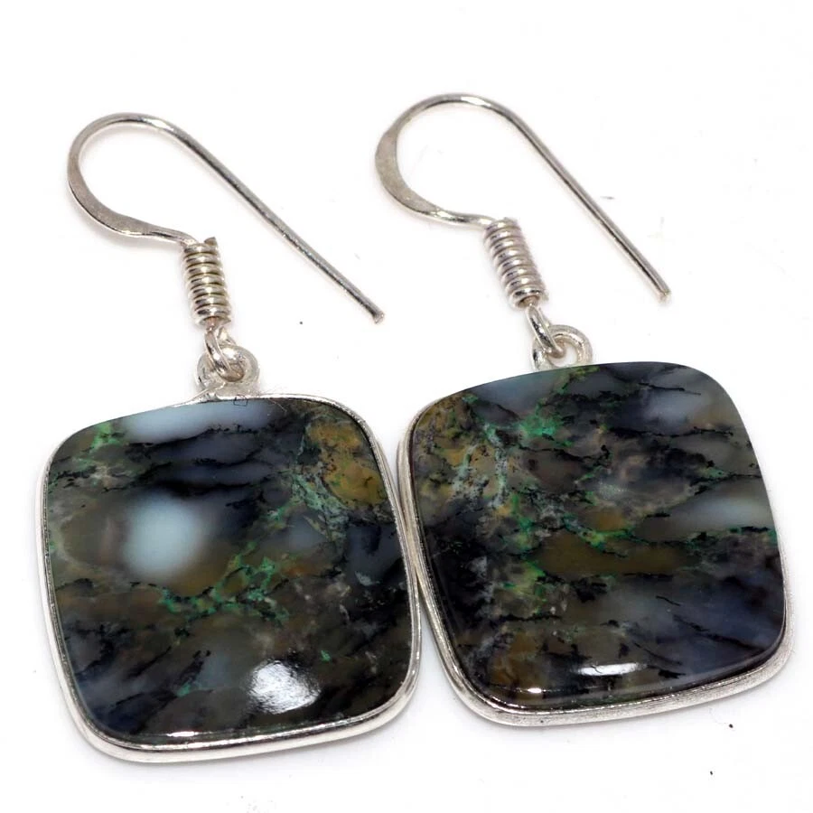 Dendritic Opal 925 Silver Plated Earrings 1.5" Aesthetic Jewellery JW