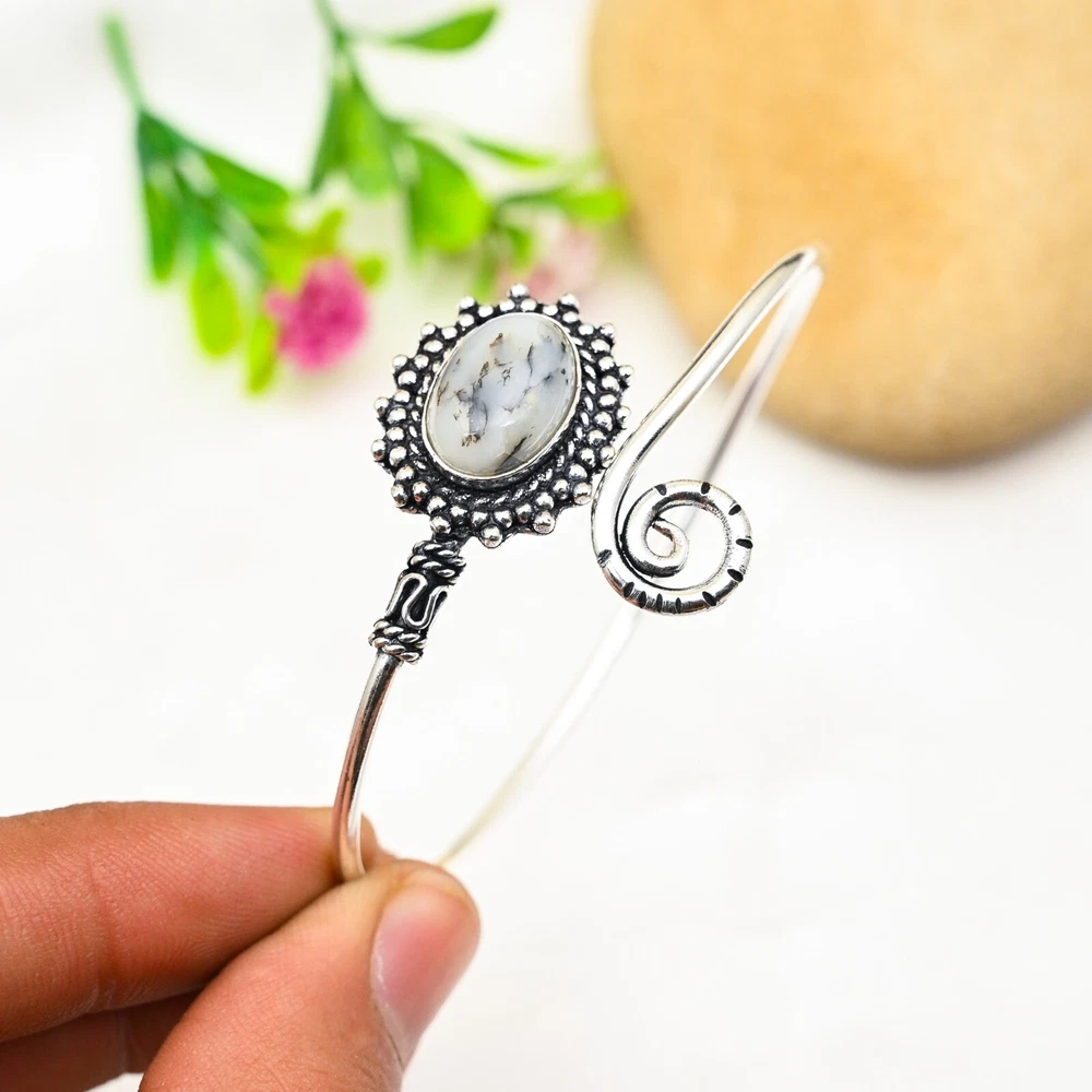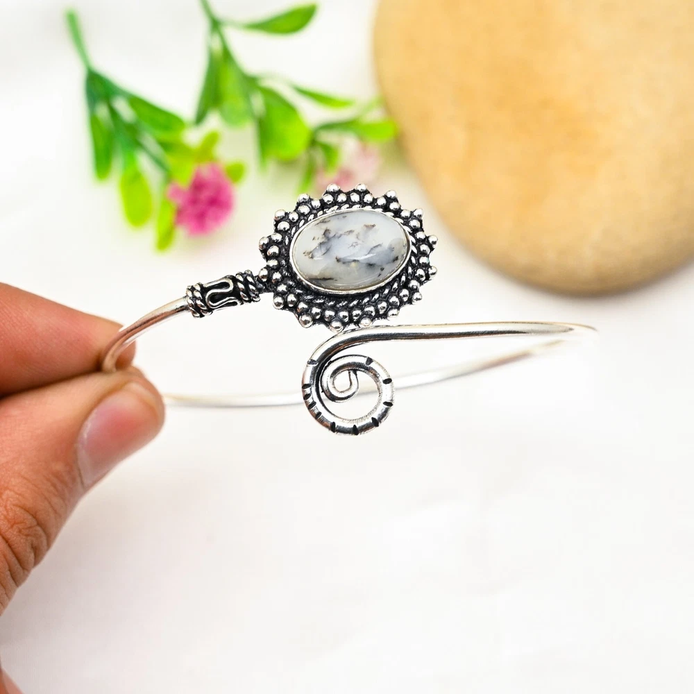 HomeDendritic Opal Gemstone Bangle 925 Sterling Silver Handmade Jewelry Party Gift